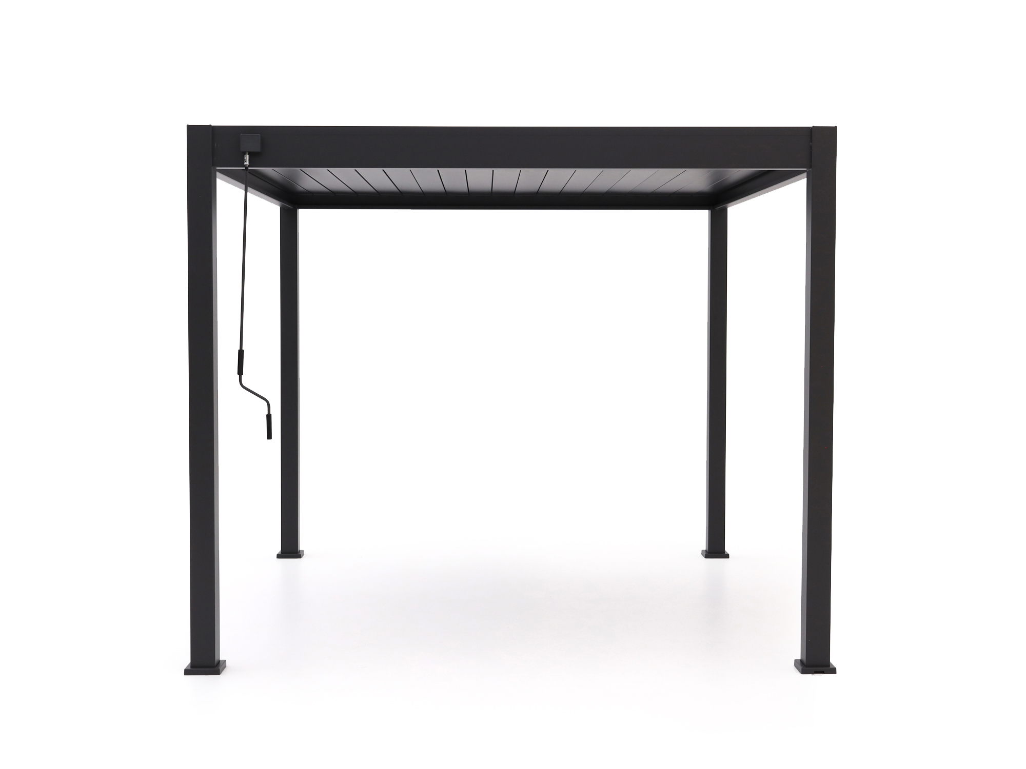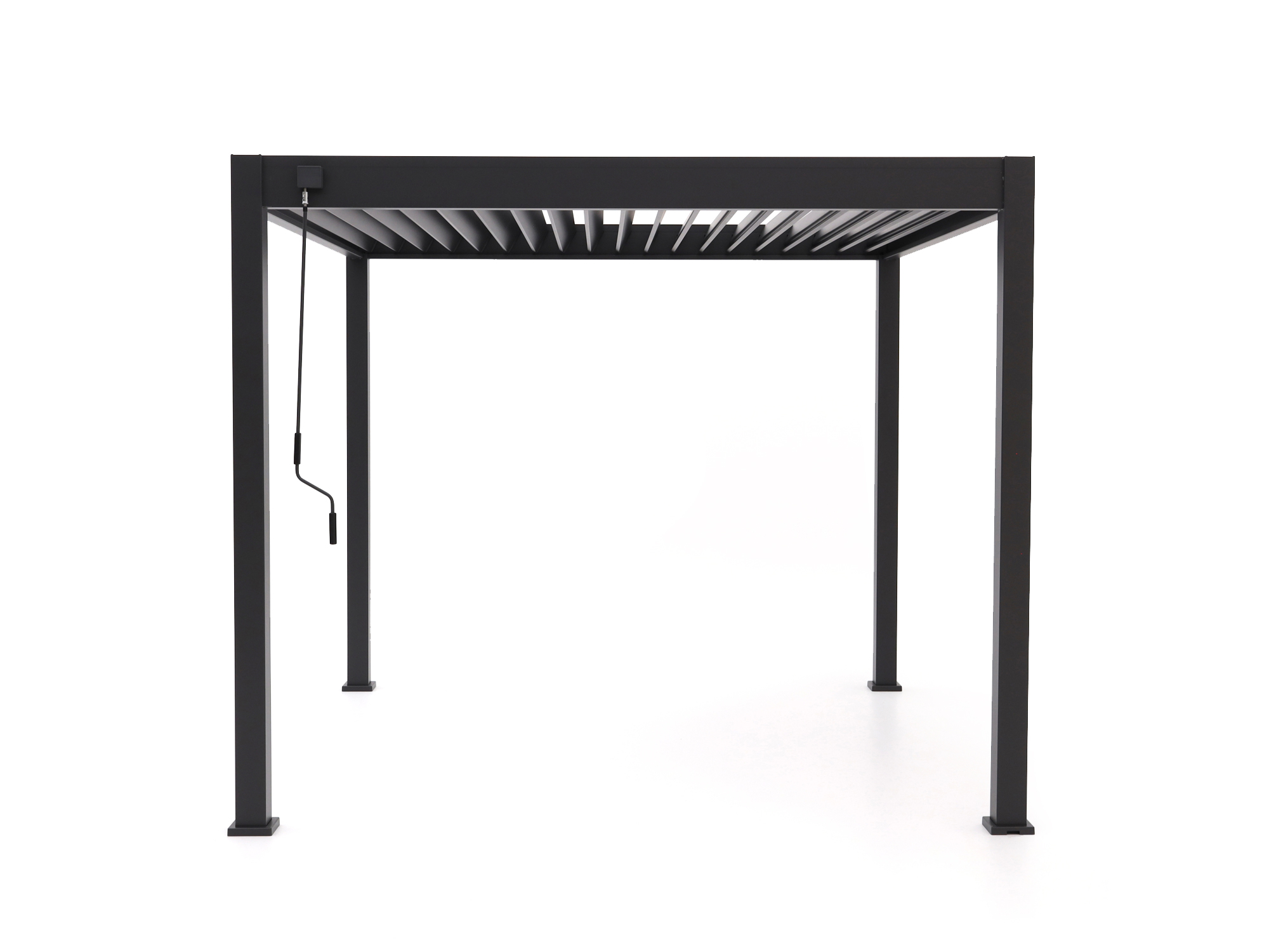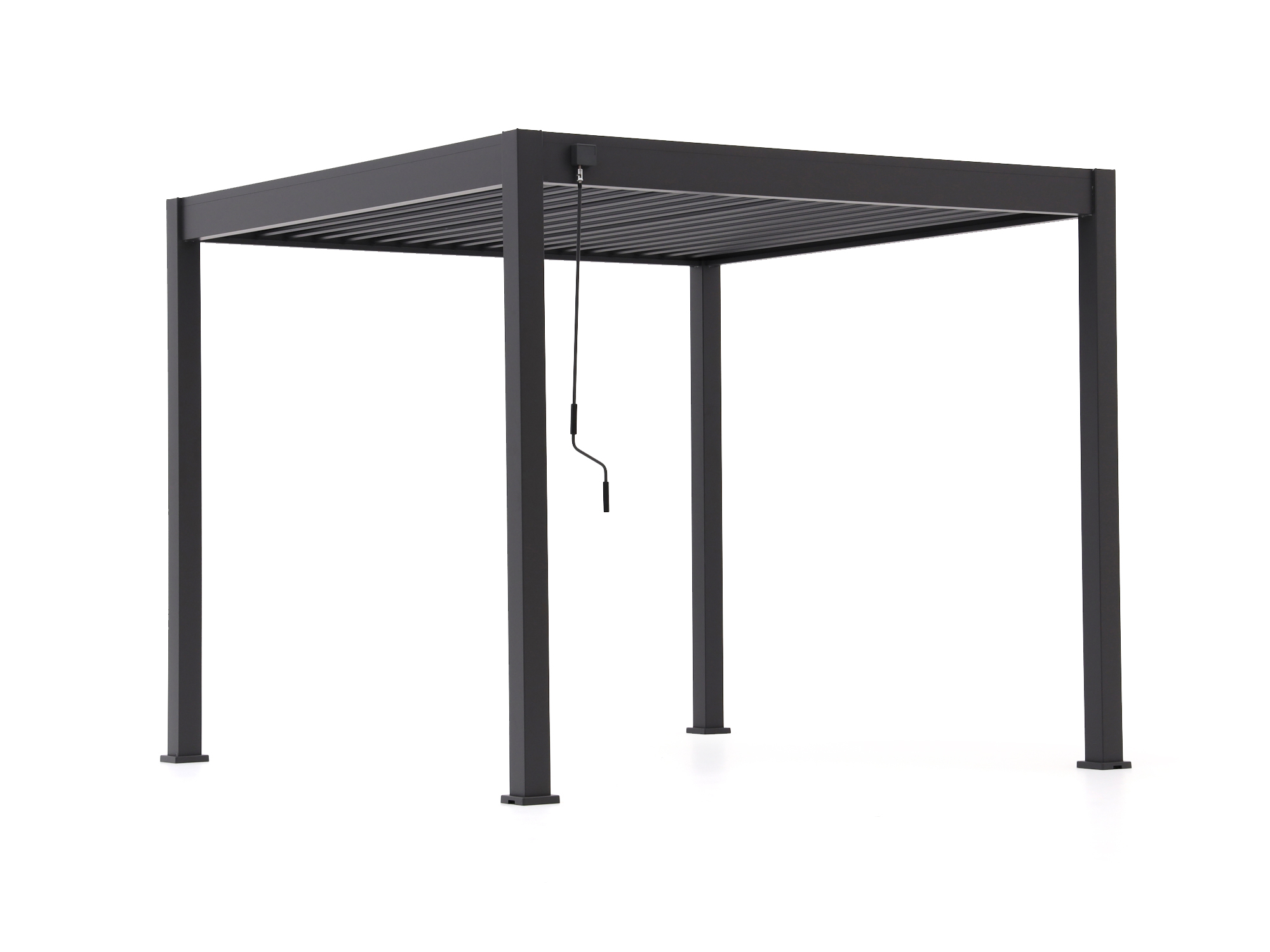 Zieht ein Regenschauer auf? Einfach die Lamellen schließen und das Regenwasser wird sauber über die Pfosten auf der Seite Ihrer Wahl abgeleitet. So bleibt Ihre Terrasse trocken – ohne Pfützen oder Tropfen.