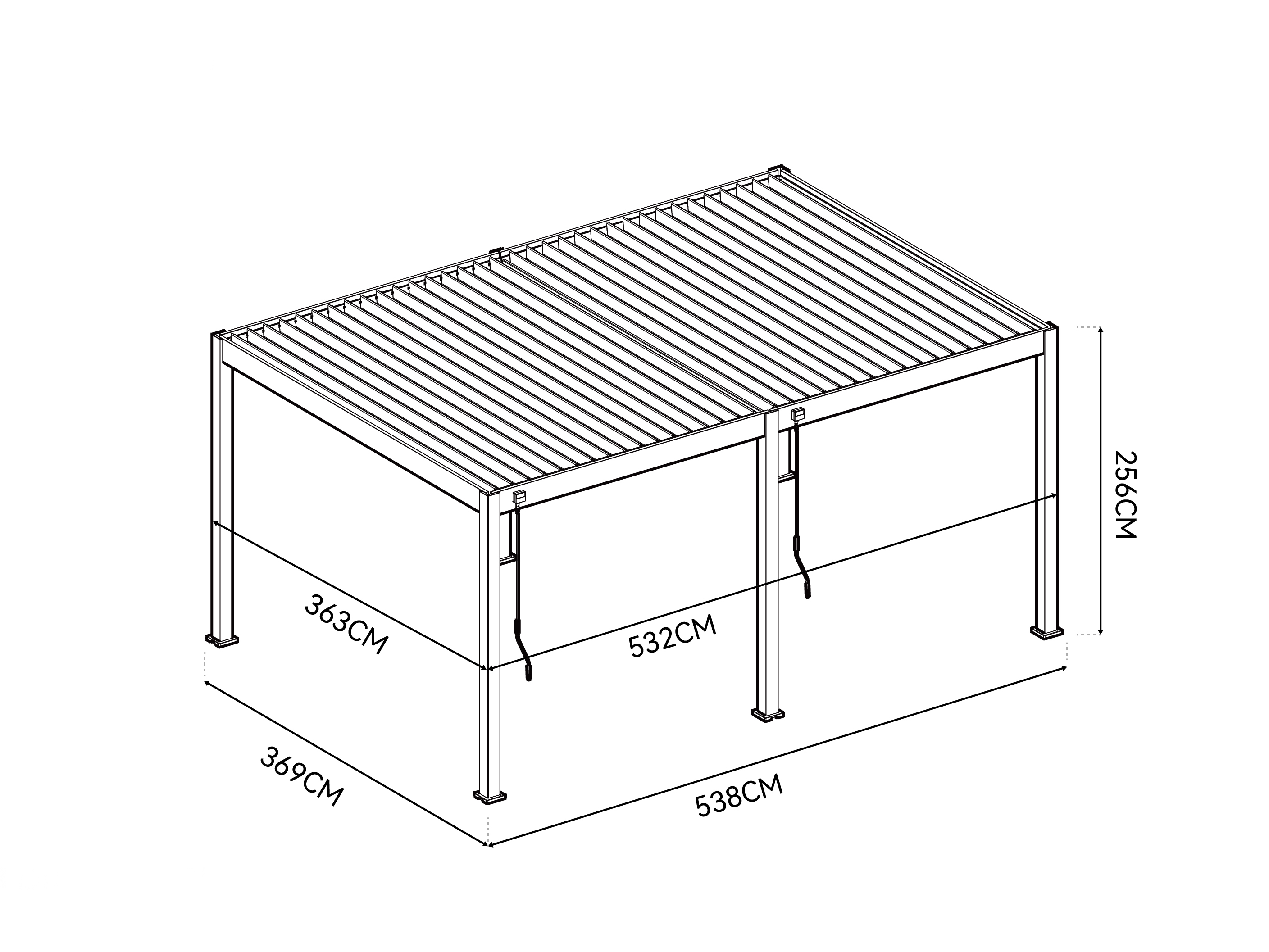 • Doppelseitige Lamellen: Dies verleiht dem Dach zusätzliche Stabilität und eine edle Optik.