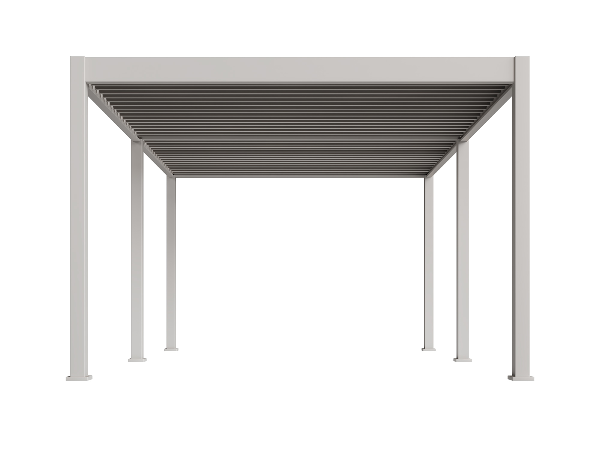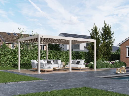• Inklusive Topbeam: Die Pergola ist mit einem Topbeam ausgestattet, sodass die Lamellen selbst im geöffneten Zustand von der Seite nicht sichtbar sind.
