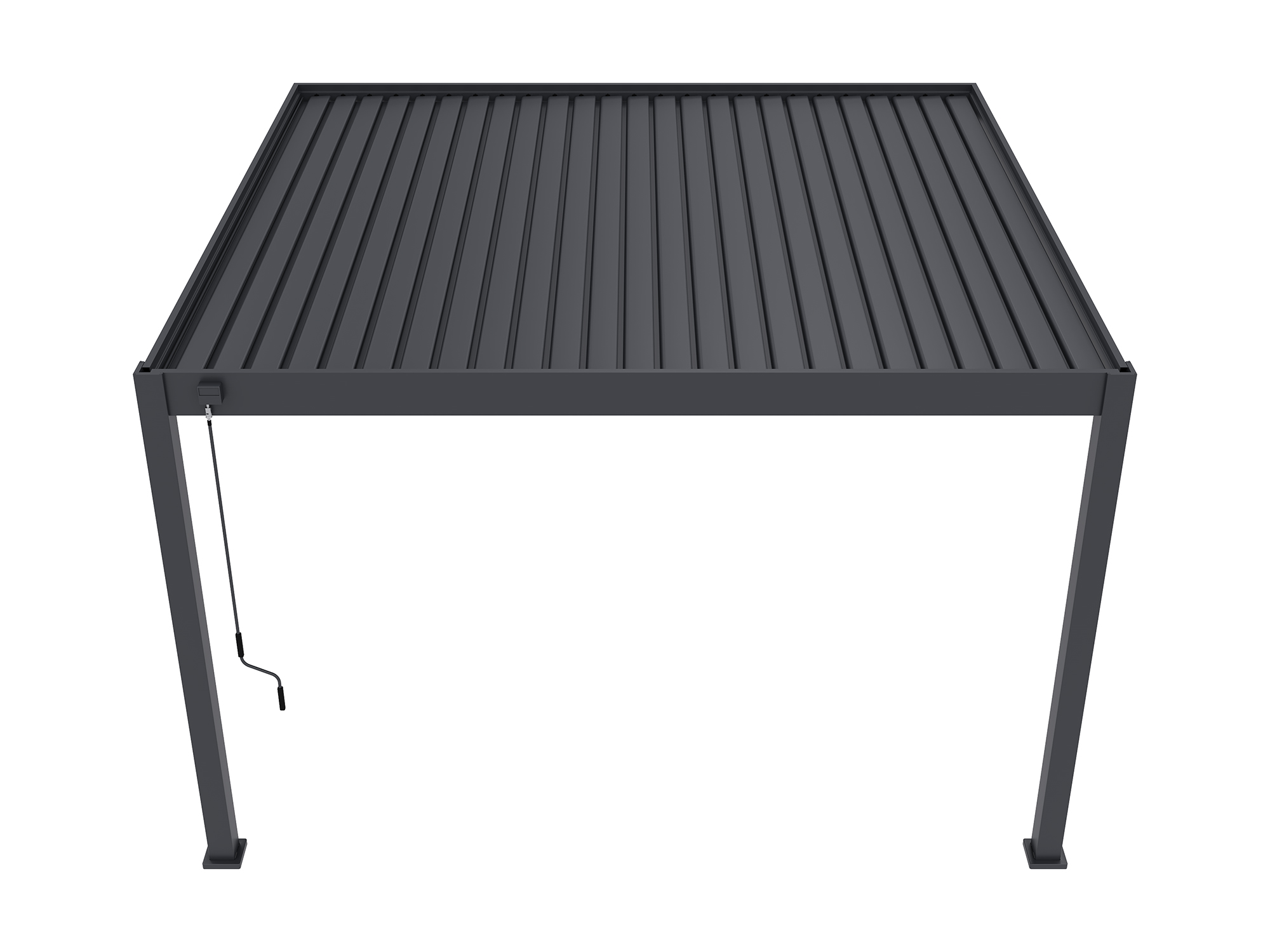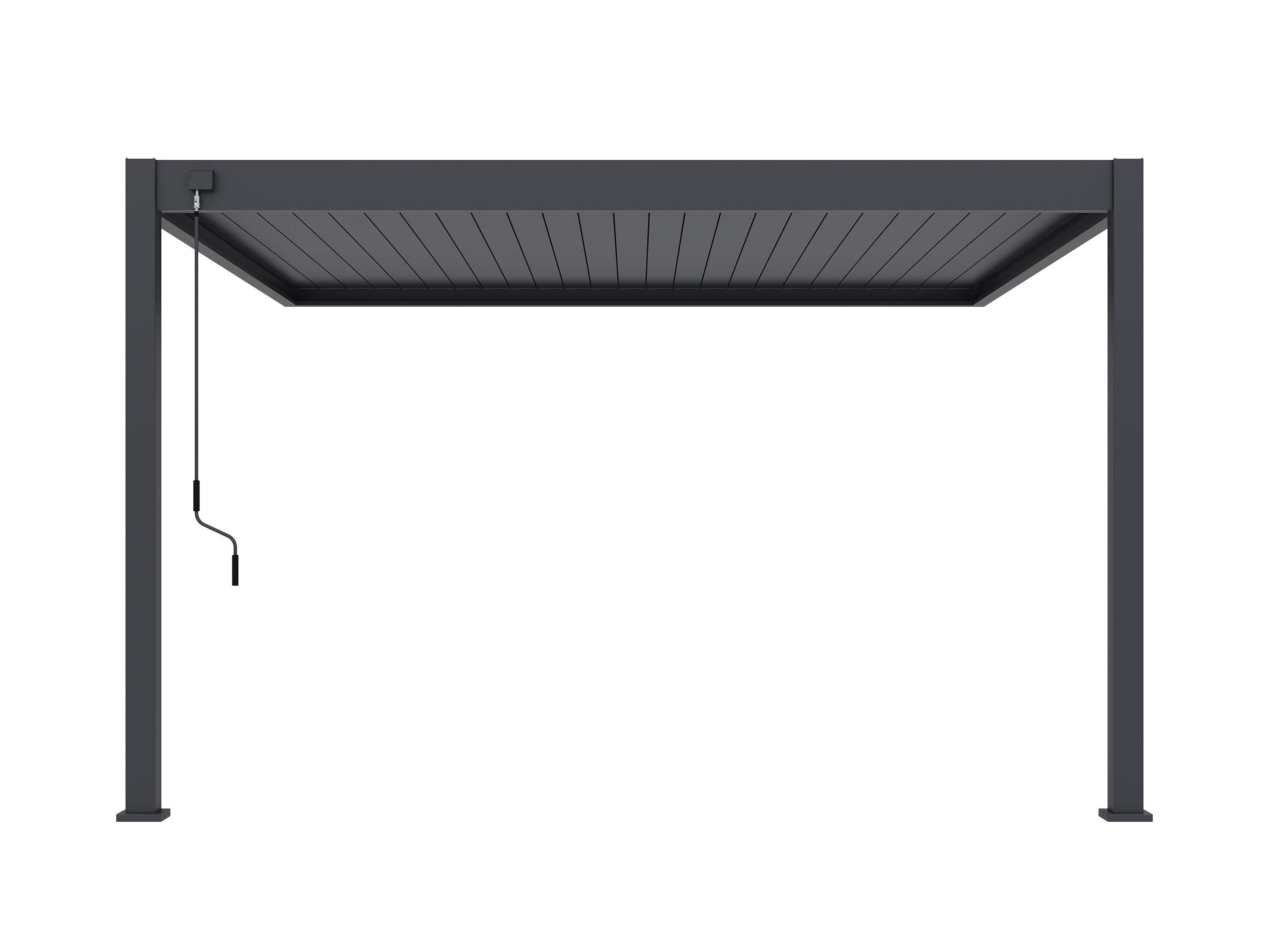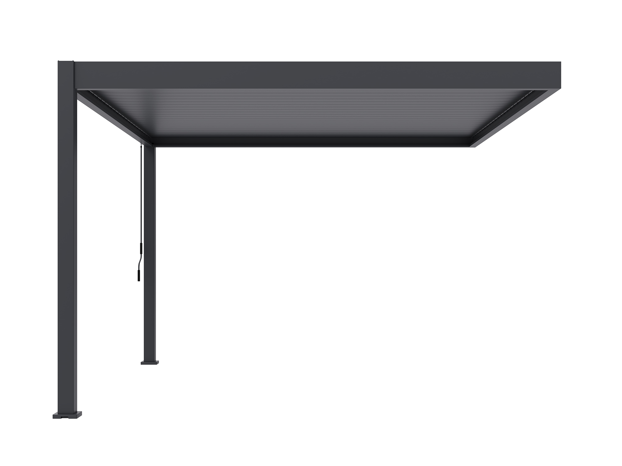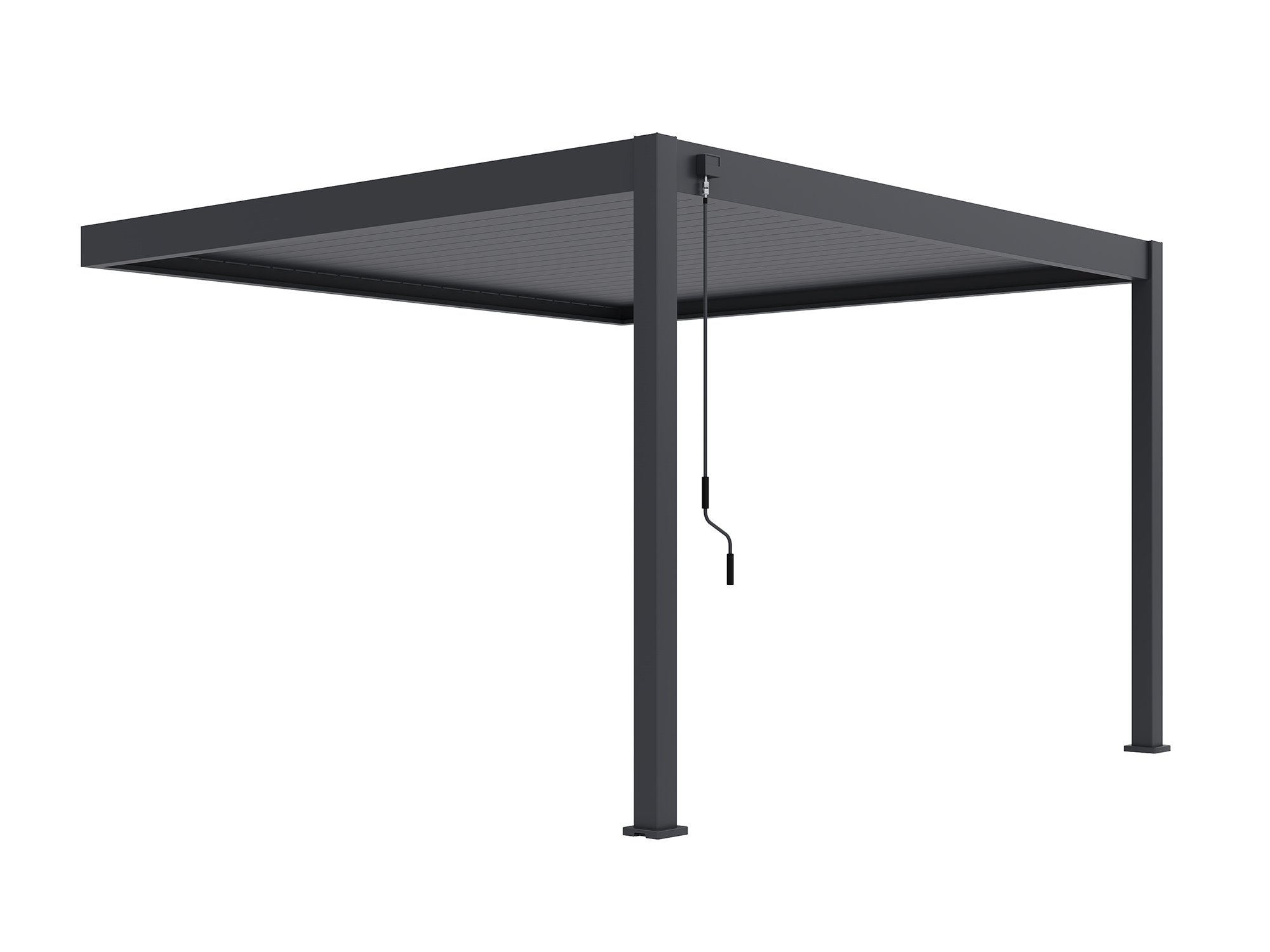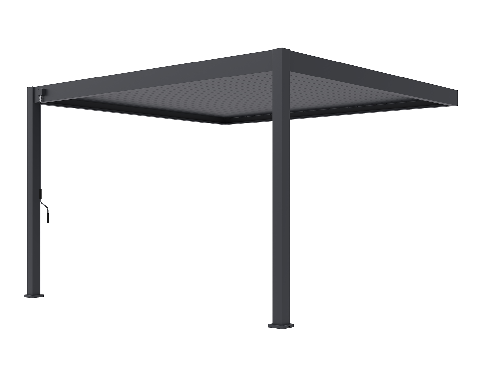 Zieht ein Regenschauer auf? Einfach die Lamellen schließen und das Regenwasser wird sauber über die Pfosten auf der Seite Ihrer Wahl abgeleitet. So bleibt Ihre Terrasse trocken – ohne Pfützen oder Tropfen.
