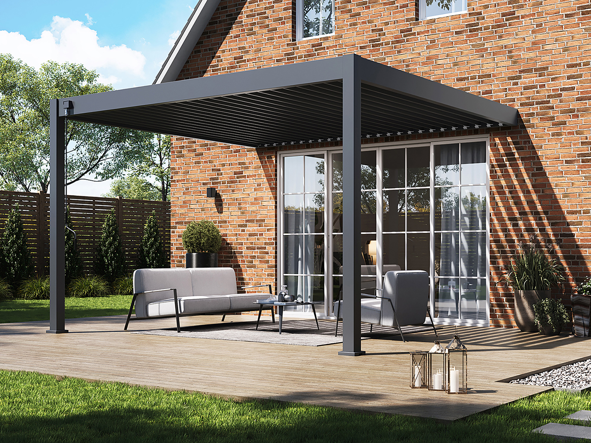 Die Lamellen lassen sich manuell um bis zu 135° kippen. So bestimmen Sie selbst, wie viel Sonne, Schatten oder Wind Sie durchlassen möchten – perfekt für jede Tageszeit.