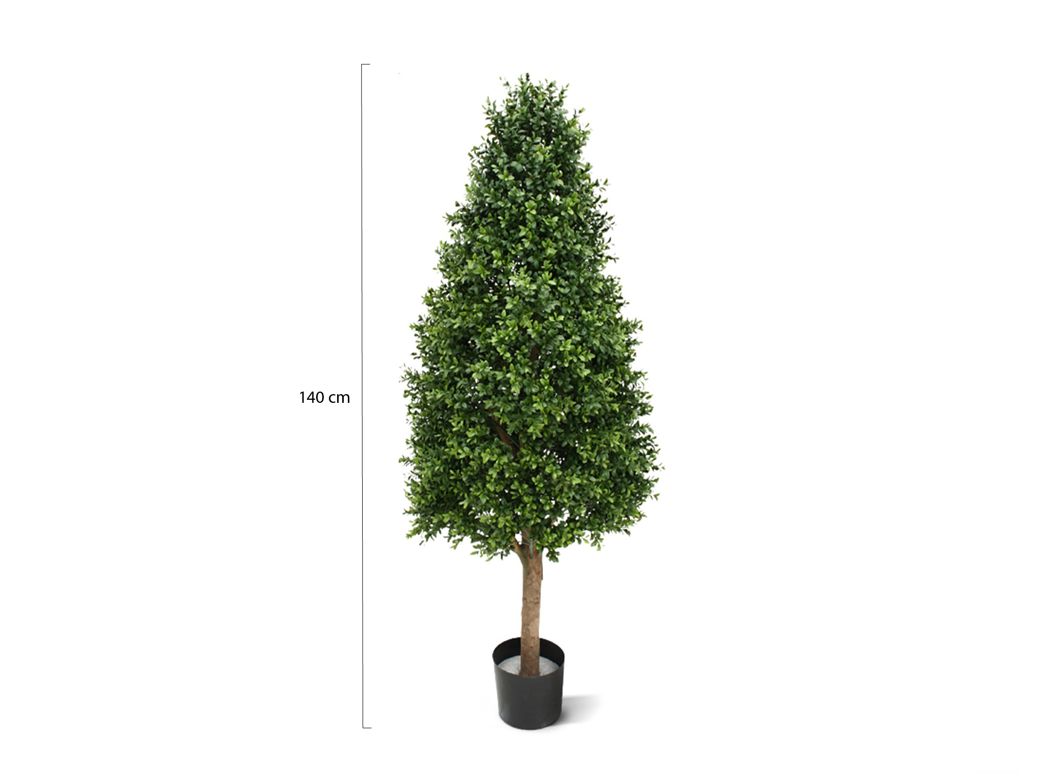 Diese Kunstbuxus ist 145 cm hoch und etwa 55 cm breit und wird in einem schwarzen Innentopf mit 17 cm Durchmesser und 15 cm Höhe geliefert, passend in Luca Lifestyle Blumentöpfe mit der Topfgröße M. Der Stamm besteht aus echtem Holz und benötigt im Außenbereich etwas Schutz vor Regen und Schimmel, zum Beispiel durch einen geschützten Standort. Achten Sie außerdem darauf, dass Wasser aus dem Topf ablaufen kann und der Innentopf nicht direkt in die Erde gesetzt wird, damit sich kein Wasser darin staut. Besonders geeignet ist sie für Sie, wenn Sie eine hohe, geradlinige Kunstpflanze für drinnen oder draußen suchen, die wenig Pflege braucht und dennoch einen gepflegten, ordentlichen Eindruck macht.