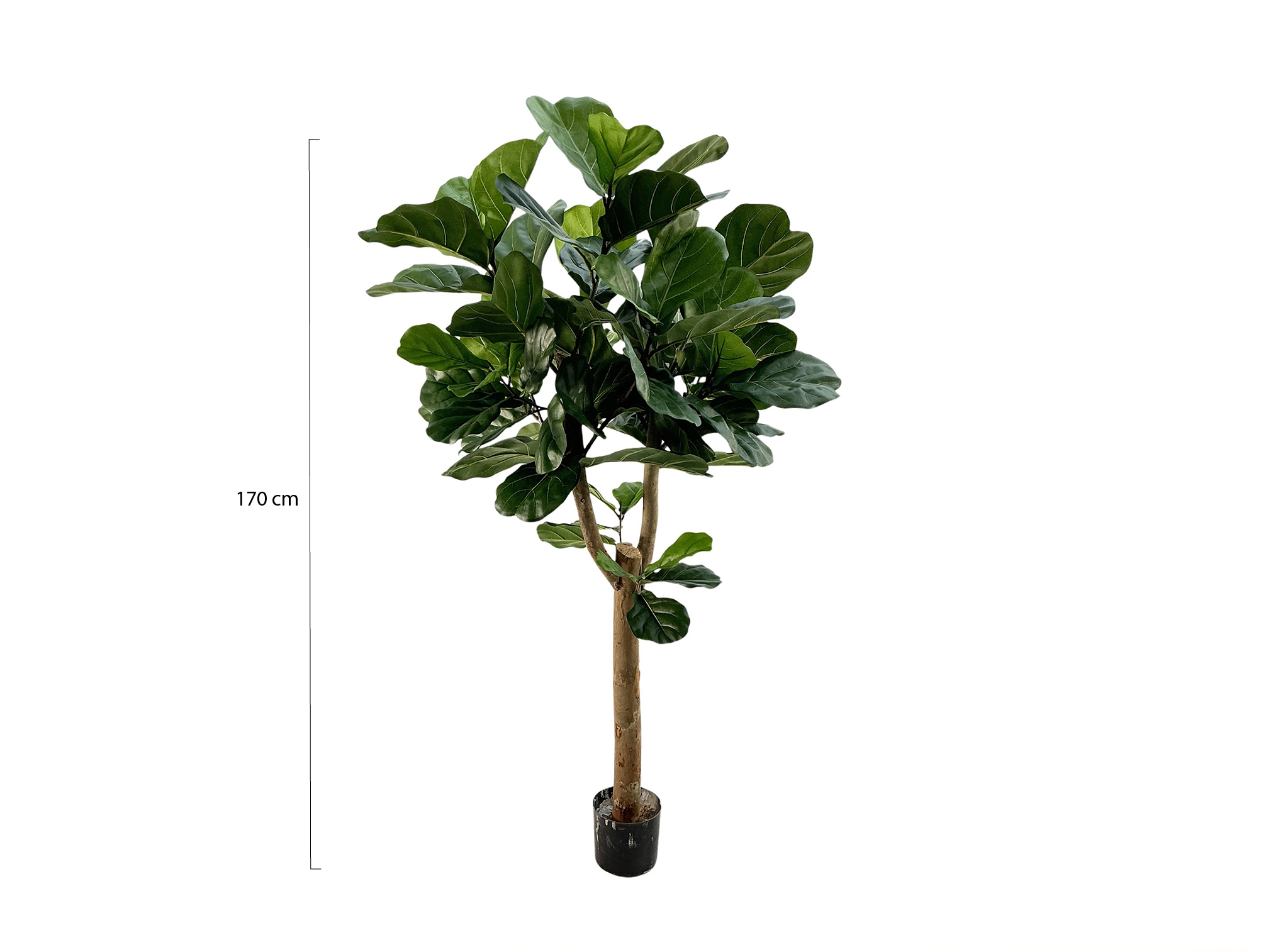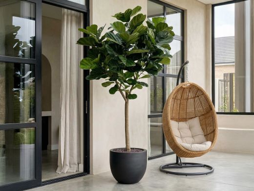 Dieser Ficus Lyrata Kunstbaum ist 170 cm hoch und etwa 85 cm breit. So fällt er auf, ohne den ganzen Raum zu dominieren. Er wird in einem Topf mit den Maßen ø17x15 cm geliefert – ideal, um ihn direkt in einen größeren Übertopf zu stellen. Kombinieren Sie ihn zum Beispiel mit einem Luca Lifestyle Blumentopf mit Topfmaß L für einen stabilen und harmonischen Look. Dieser Kunstbaum passt besonders gut zu Ihnen, wenn Sie eine große grüne Pflanze möchten, ohne sich Gedanken über Licht, Gießen oder braune Blätter zu machen.