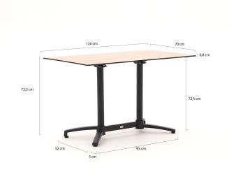 • Kompakter rechteckiger Tisch, 120 cm: Sie können mit 4 Personen bequem essen, ohne dass das Set auf Ihrer Terrasse viel Platz einnimmt.
