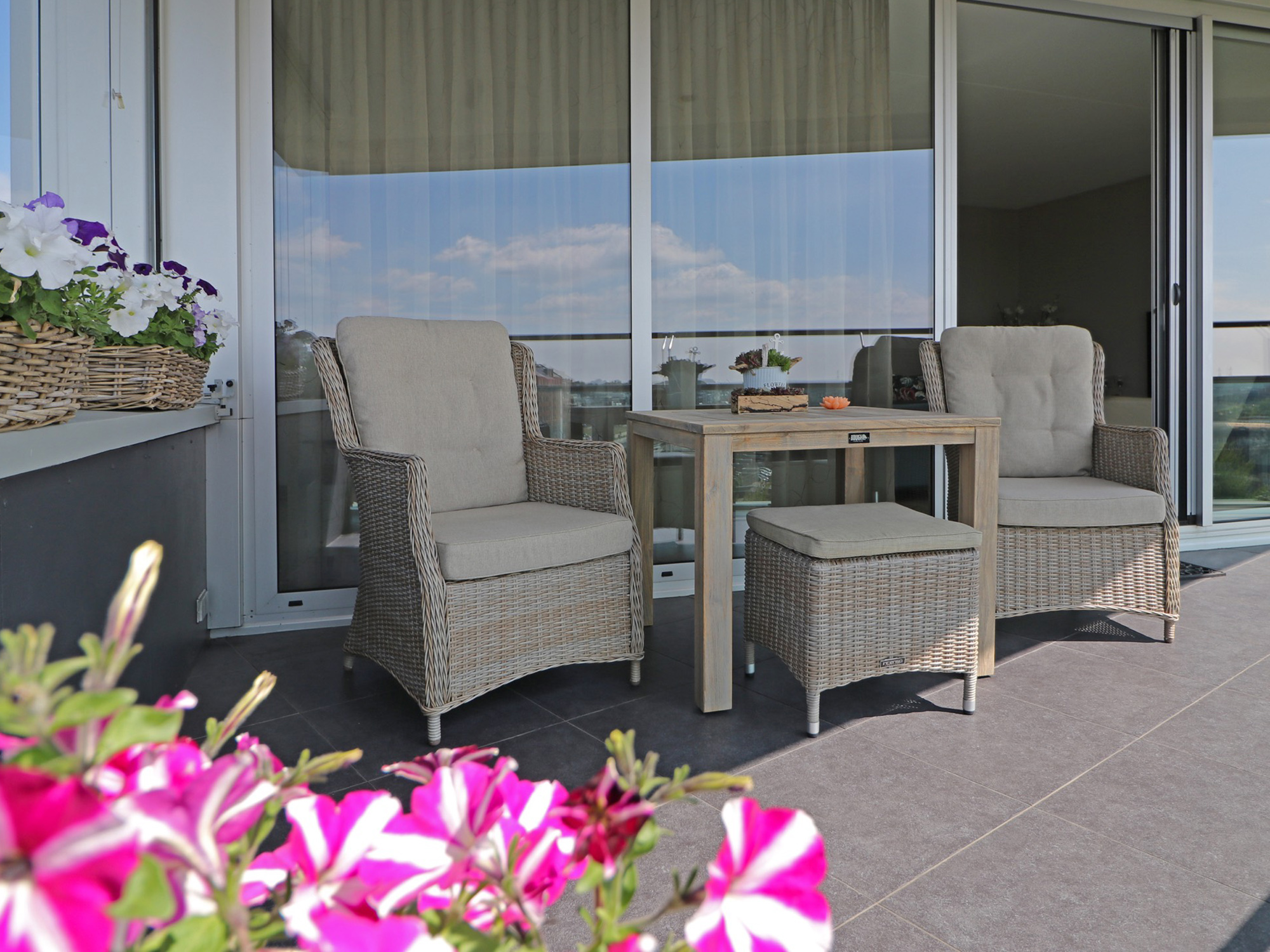 Pflegeleicht: Sowohl das Teakholz als auch das Polyrattan sind einfach zu reinigen und benötigen nur wenig Pflege.
