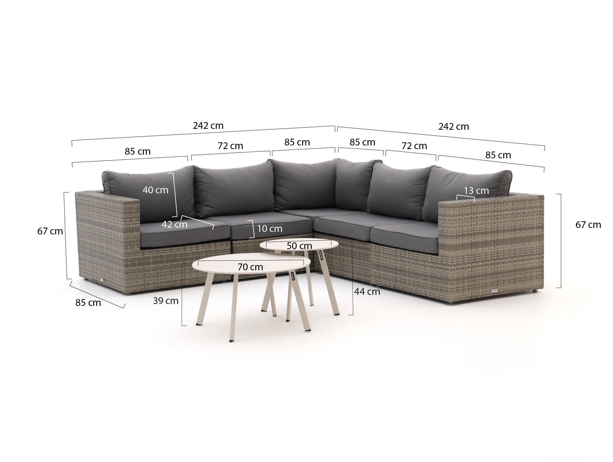 • Eckaufstellung: Sie nutzen eine Ecke Ihrer Terrasse optimal und sitzen dennoch entspannt mit 5 Personen.