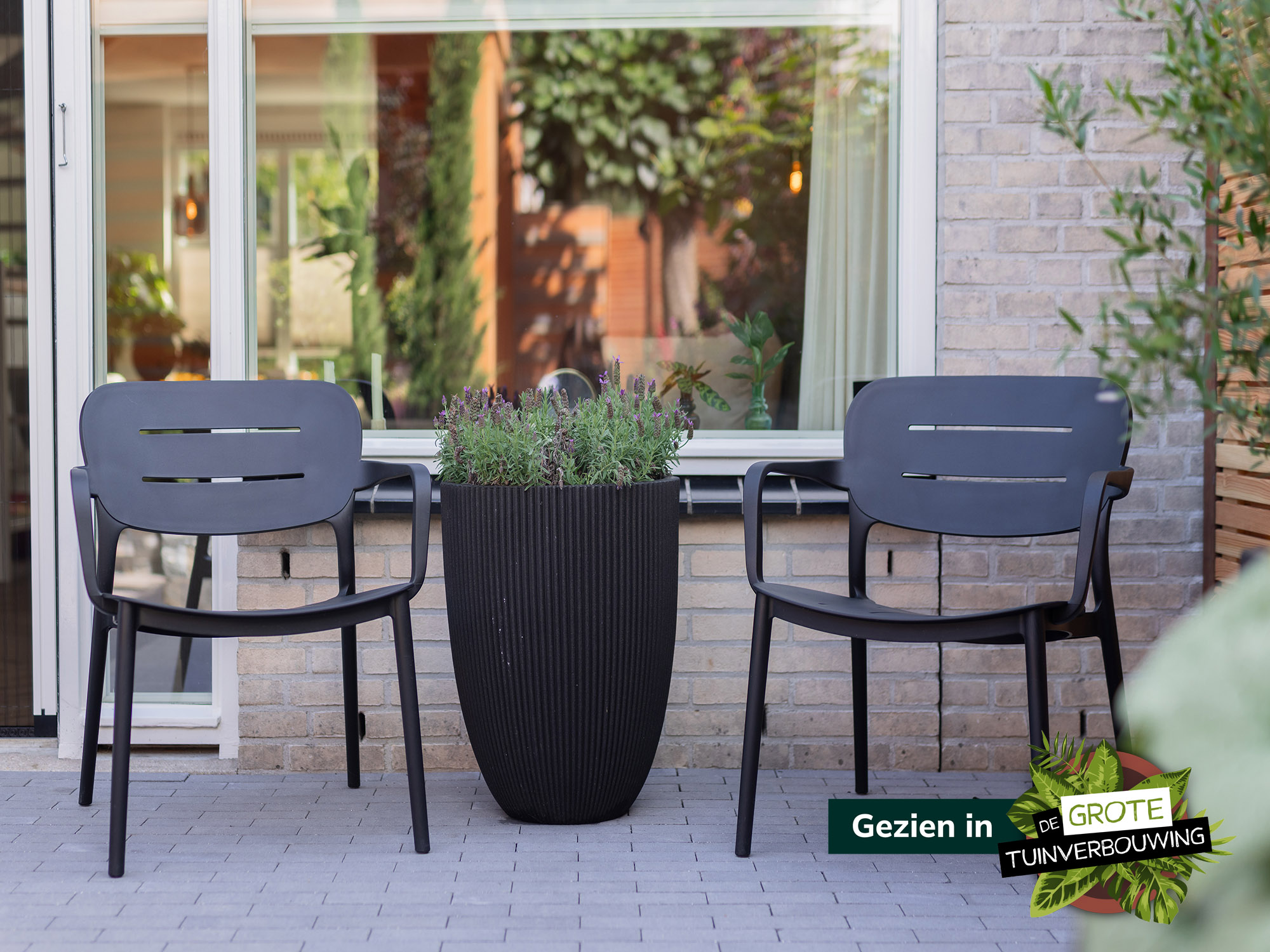 Der Forza Pazzia Lounge-Gartenstuhl ist stapelbar und spart so Platz