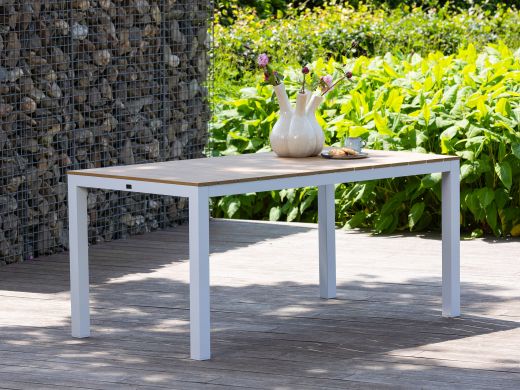 • Kompaktes Maß (160 cm): Der Tisch benötigt wenig Platz und ist damit ideal für kleinere Terrassen oder Balkone.