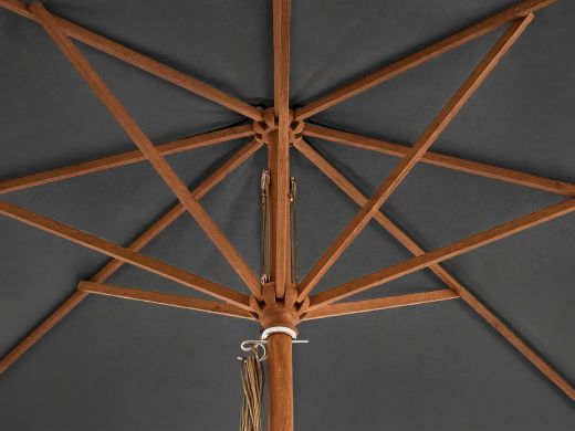 Dieser Sonnenschirm muss nicht montiert werden – einfach den Mast in den Schirmständer einsetzen und sicher fixieren. Je nach Modell kann es erforderlich sein, den Füll- oder Kreuzfuß zusätzlich zu beschweren, damit der Schirm auch bei Wind stabil steht. Mit der klaren Anleitung stellen Sie sicher, dass alles sicher und fest steht. So genießen Sie im Handumdrehen den Schatten in Ihrem Garten!
