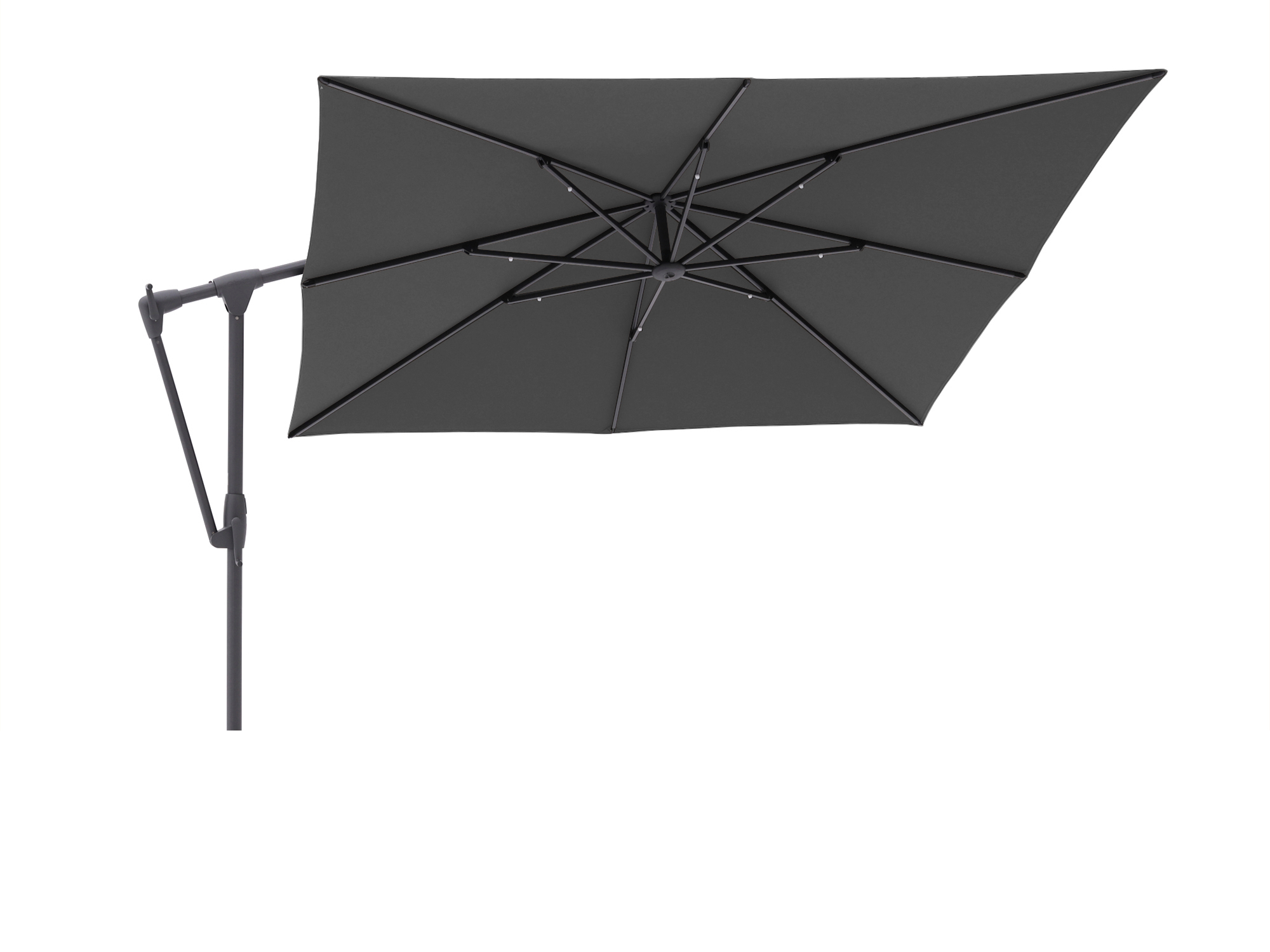 Dank der seitlich versetzten Aufhängung genießen Sie maximale Bewegungsfreiheit zwischen Gartentisch und Lounge-Set.