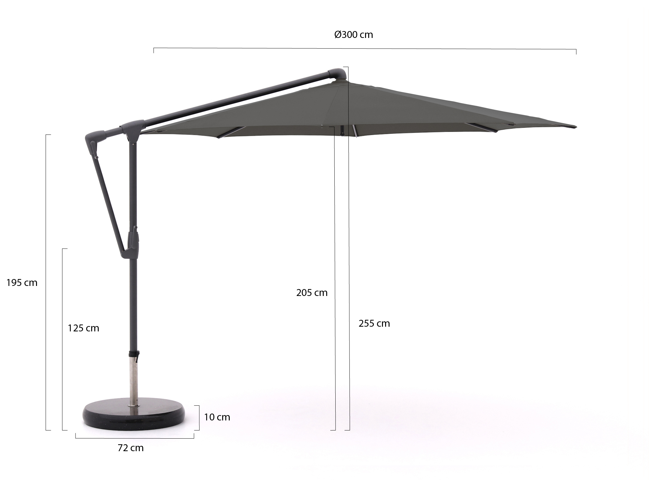 Dank der seitlich versetzten Aufhängung genießen Sie maximale Bewegungsfreiheit zwischen Gartentisch und Lounge-Set.