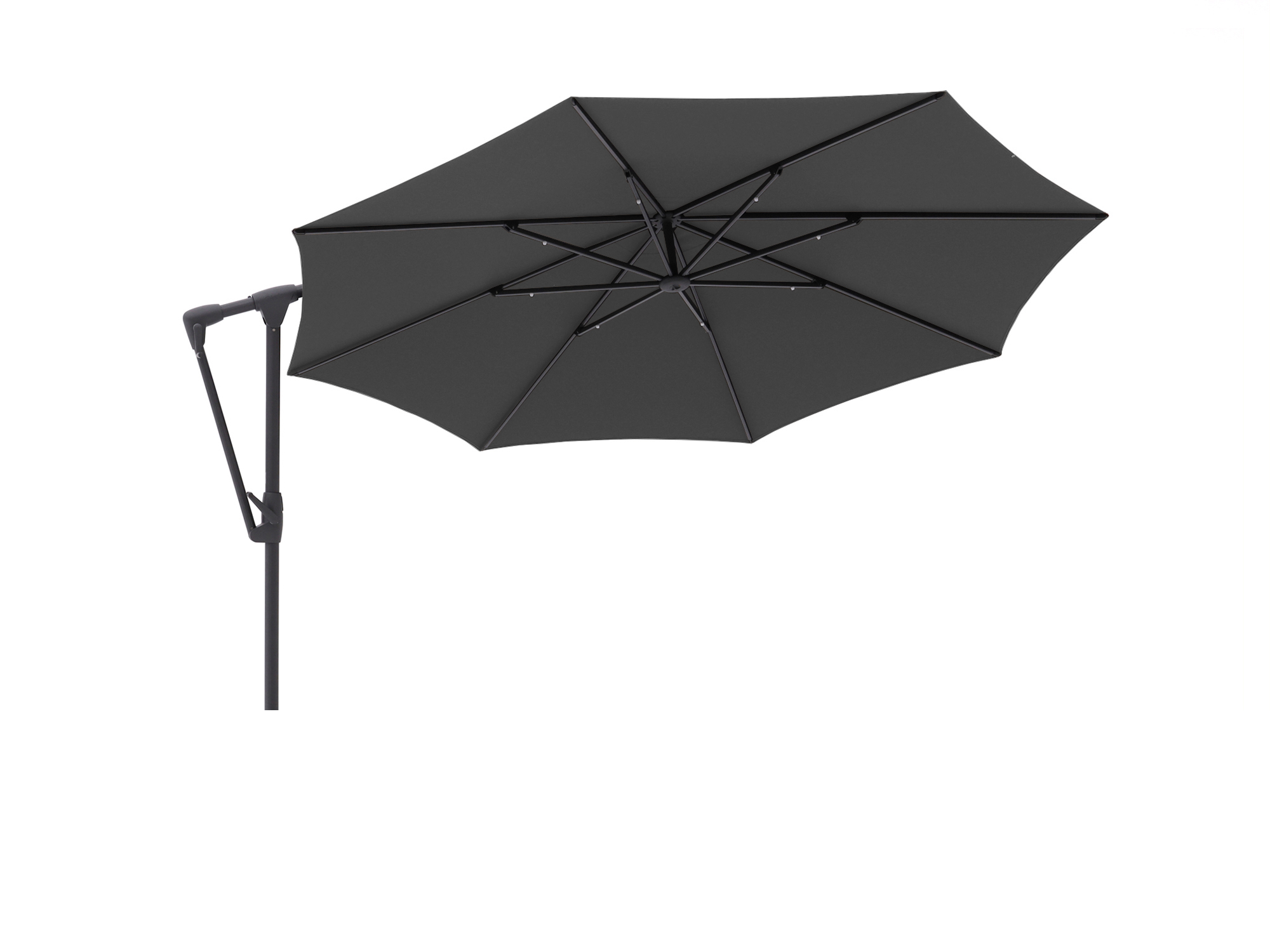 Dank der seitlich versetzten Aufhängung genießen Sie maximale Bewegungsfreiheit zwischen Gartentisch und Lounge-Set.