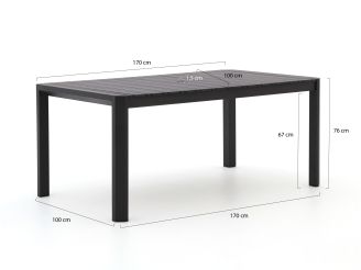 Der Hartman Alexandra Gartentisch 170x100cm ist ein rechteckiger Gartentisch aus Aluminium für 4 Personen. Ideal, wenn Sie kompakt sitzen möchten, aber trotzdem genug Platz für Teller, Schalen und Getränke wünschen. Die Tischplatte und das Gestell aus Aluminium in Anthrazit sind leicht im Gewicht, sodass Sie den Tisch mühelos verschieben können, wenn Sie Ihre Terrasse neu gestalten möchten. Durch das Maß von 170x100 cm sitzen 4 Personen sehr großzügig, und zu 6. wird es gemütlicher, wenn Sie an den Stirnseiten zusätzliche Stühle platzieren. Die Höhe von 75 cm entspricht einer Standard-Esshöhe, sodass die meisten Gartenstühle gut darunter passen. Suchen Sie einen schlichten, pflegeleichten Tisch, an dem Sie ohne viel Aufwand essen und gemütlich etwas trinken können, ist dieser Tisch eine sehr gute Wahl.