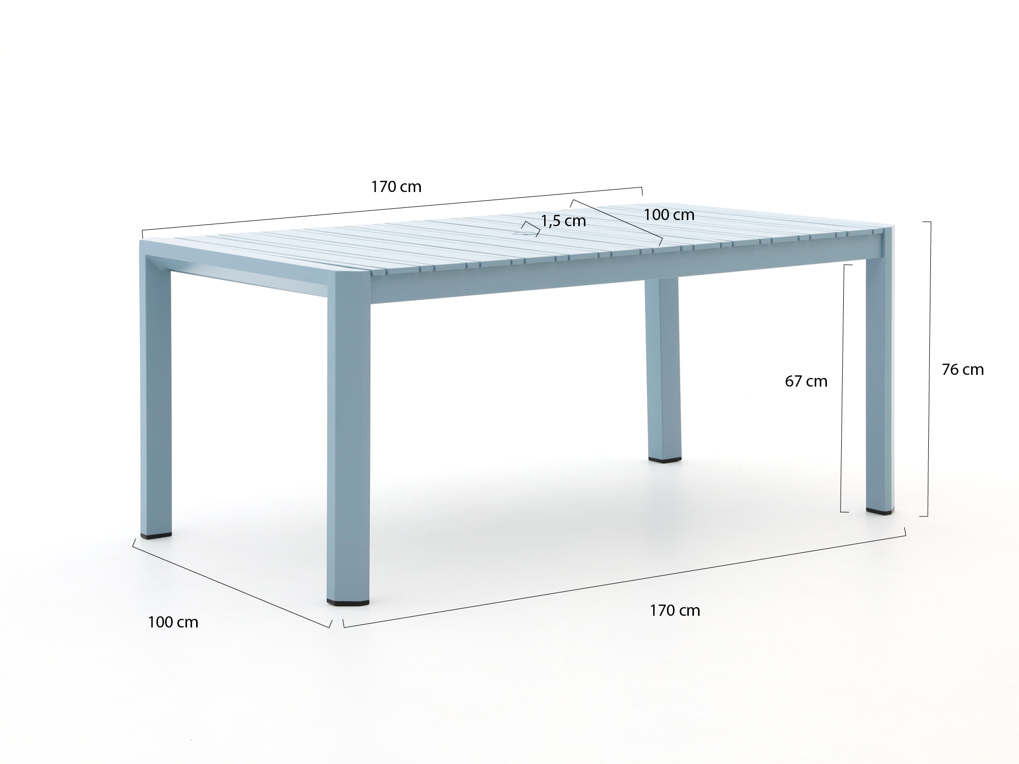 • Blaue Farbe: Der blaue Tisch ist ein echter Hingucker in Ihrem Garten – perfekt, wenn Sie einmal etwas anderes möchten als das übliche Grau oder Schwarz.