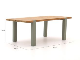 Der Hartman Almeria Gartentisch ist ein großzügiger Esstisch für 6 Personen mit einer Tischplatte aus Teakholz und einem grünen Aluminiumgestell. Sitzen Sie gerne lange mit Familie oder Freunden beim Essen oder einem gemütlichen Drink zusammen, bietet Ihnen die Größe von 200x100 cm genügend Platz für Teller, Schalen und Getränke, ohne dass es gedrängt wird. Teakholz ist ein robustes Naturprodukt, das das ganze Jahr über draußen stehen kann und mit der Zeit eine schöne silbergraue Patina entwickelt – oder Sie erhalten die ursprüngliche Farbe mit einem Farbschutzmittel. Das Aluminiumgestell ist leicht und rostet nicht. So bleibt der Tisch lange schön und lässt sich leichter versetzen, wenn Sie Ihre Terrasse neu gestalten möchten. Der sanfte Grünton des Gestells sorgt für eine stimmige Atmosphäre, ohne zu dominant zu wirken.