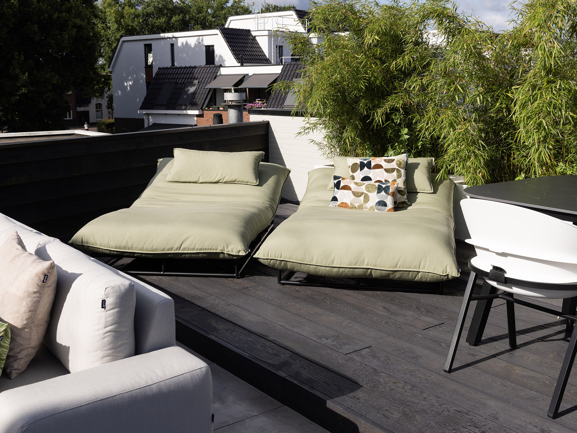 • Farbe Grün: Der Grünton lässt sich leicht mit Holz wie auch mit Metall kombinieren, sodass Sie Ihr bestehendes Gartenmöbel-Set nicht austauschen müssen, damit alles zusammenpasst.