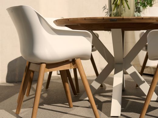 Runde Form: Der Tisch mit einem Durchmesser von 180 cm ist komplett rund, ohne scharfe Ecken. Dadurch wirkt er besonders geräumig und einladend – perfekt, um entspannt mit allen am Tisch zu plaudern.