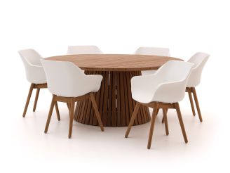 Dieses Gartenmöbel-Set bringt Komfort und Stil in Ihren Außenbereich. Der runde Tisch aus robustem Teakholz bietet Platz für sechs Personen und lädt zu geselligen Stunden im Freien ein. Die Stühle aus Kunststoff sind nicht nur pflegeleicht, sondern auch bequem, sodass Sie lange Abende im Garten genießen können. Das Set ist wetterfest und langlebig, was es zu einer praktischen Wahl für jeden Garten macht.