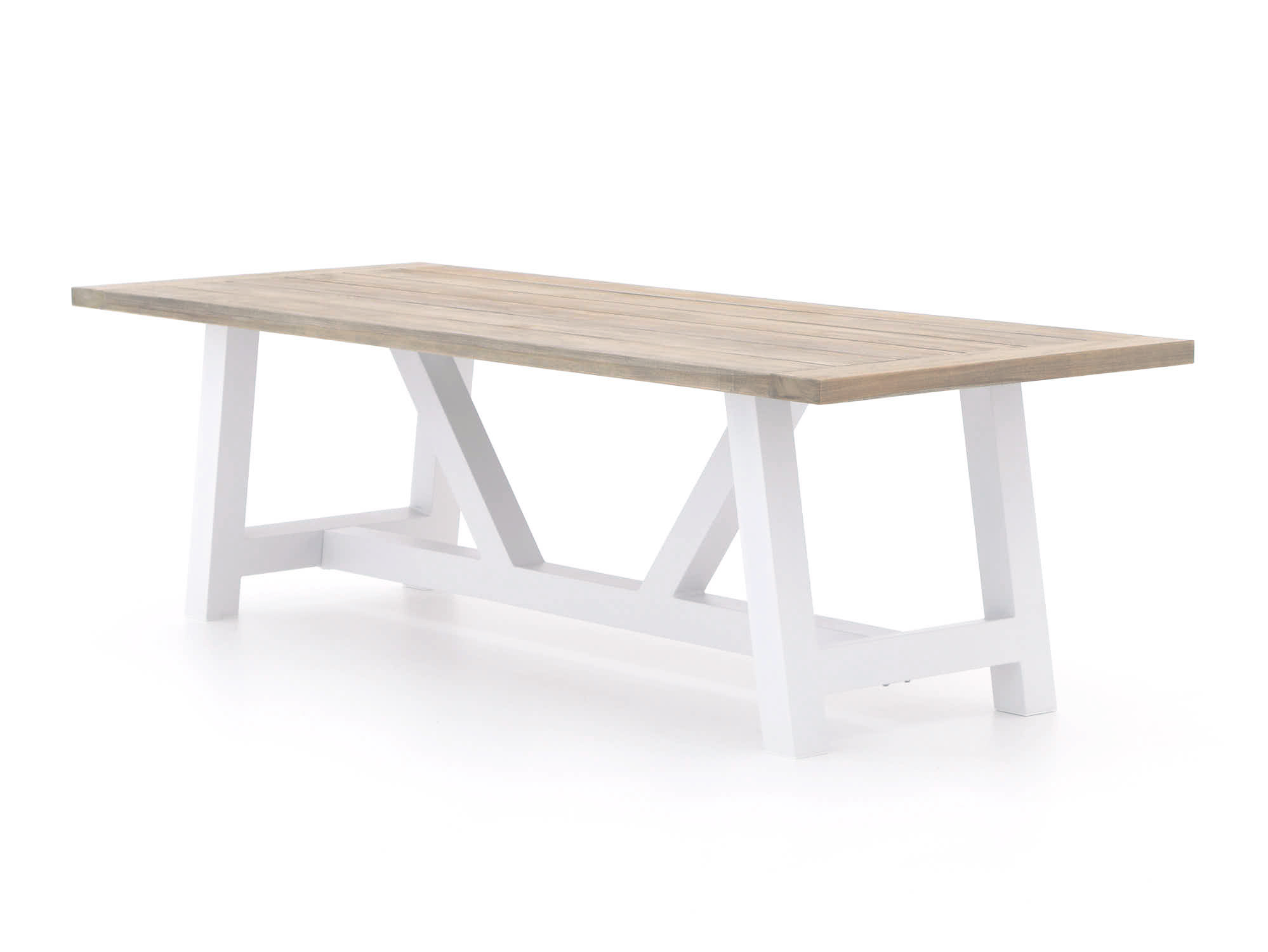• Die Tischplatte aus Teakholz ist widerstandsfähig und pflegeleicht, ideal für den Außenbereich