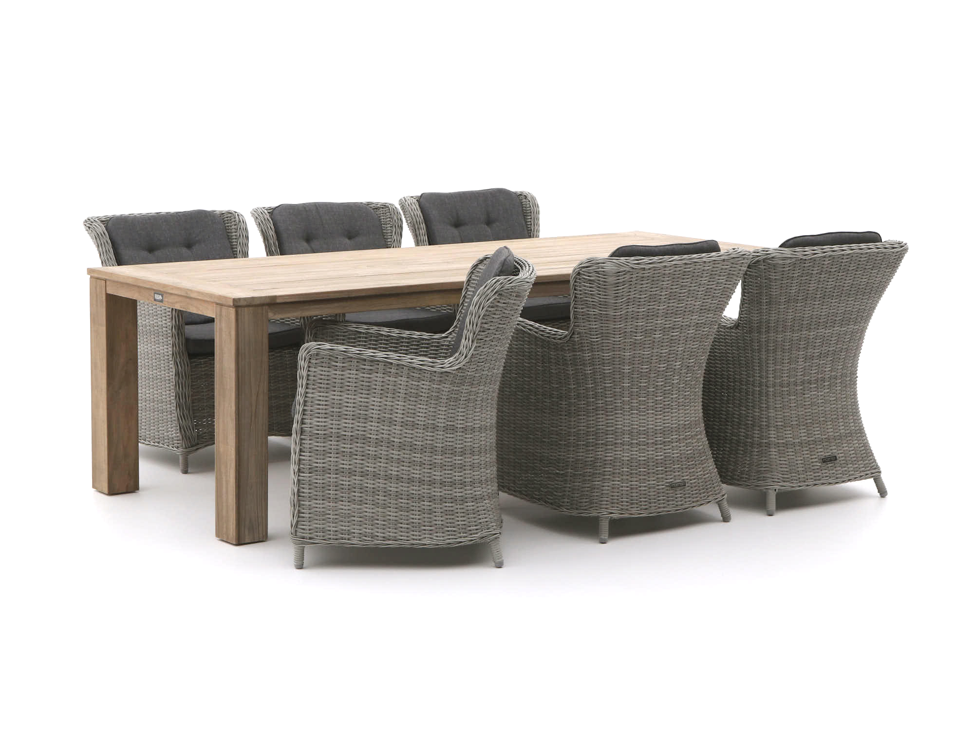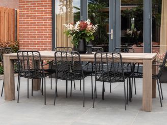Ist Ihr Gartenmöbel-Set schmutzig geworden? Dann wischen Sie es ganz einfach mit einem Tuch und etwas grüner Seife ab. Für die Reinigung der Teakholz-Tischplatte empfehlen wir eine grobe Bürste, einen Eimer lauwarmes Wasser und eine Tasse Reinigungssoda oder Salz. Dies ist in der Regel ausreichend, um Staub und Schmutz zu entfernen. Wir empfehlen, Ihr Gartenmöbel-Set mindestens zweimal im Jahr mit einem speziellen Reiniger gründlich zu reinigen. Für das beste Ergebnis verwenden Sie dabei unseren Kees Smit Teak & Hartholz Reiniger für die Tischplatte und den Kees Smit Multi-Oberflächen Reiniger für die Polyrattan-Sitzflächen. Vermeiden Sie die Verwendung eines Hochdruckreinigers, da dies das Material beschädigen kann.