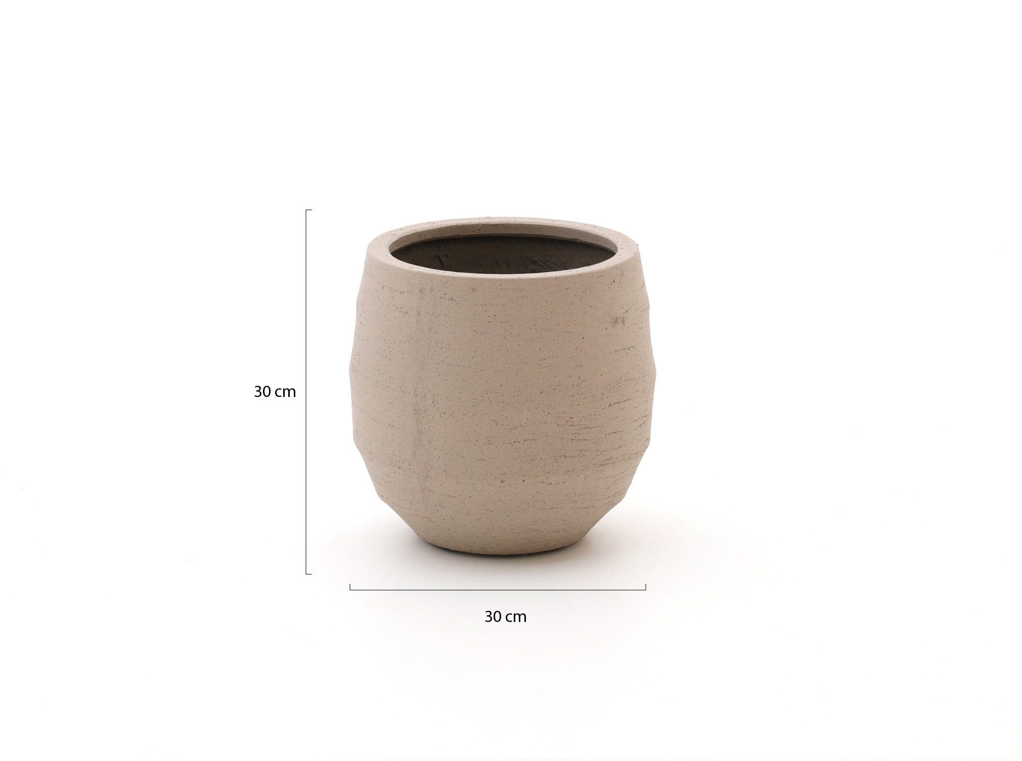 Mit einem Außenmaß von 30 x 30 Centimeter und einer Höhe von 30 Centimeter hat dieser Topf ein praktisches Format, das wenig Platz einnimmt und trotzdem gut zur Geltung kommt. Die Sandfarbe lässt sich leicht mit grünen wie auch mit bunt blühenden Pflanzen kombinieren, ohne dass es unruhig wirkt. Im Innenbereich verwenden Sie bei echten Pflanzen immer ein Inset, da der Topf durch die Ablauföffnungen und den Stopfen nicht vollständig wasserdicht ist. Dieser Topf passt besonders gut zu Ihnen, wenn Sie eine ruhige, helle Basis wünschen und einen Topf suchen, der sich sowohl neben dem Sofa als auch an der Terrassentür gut macht.