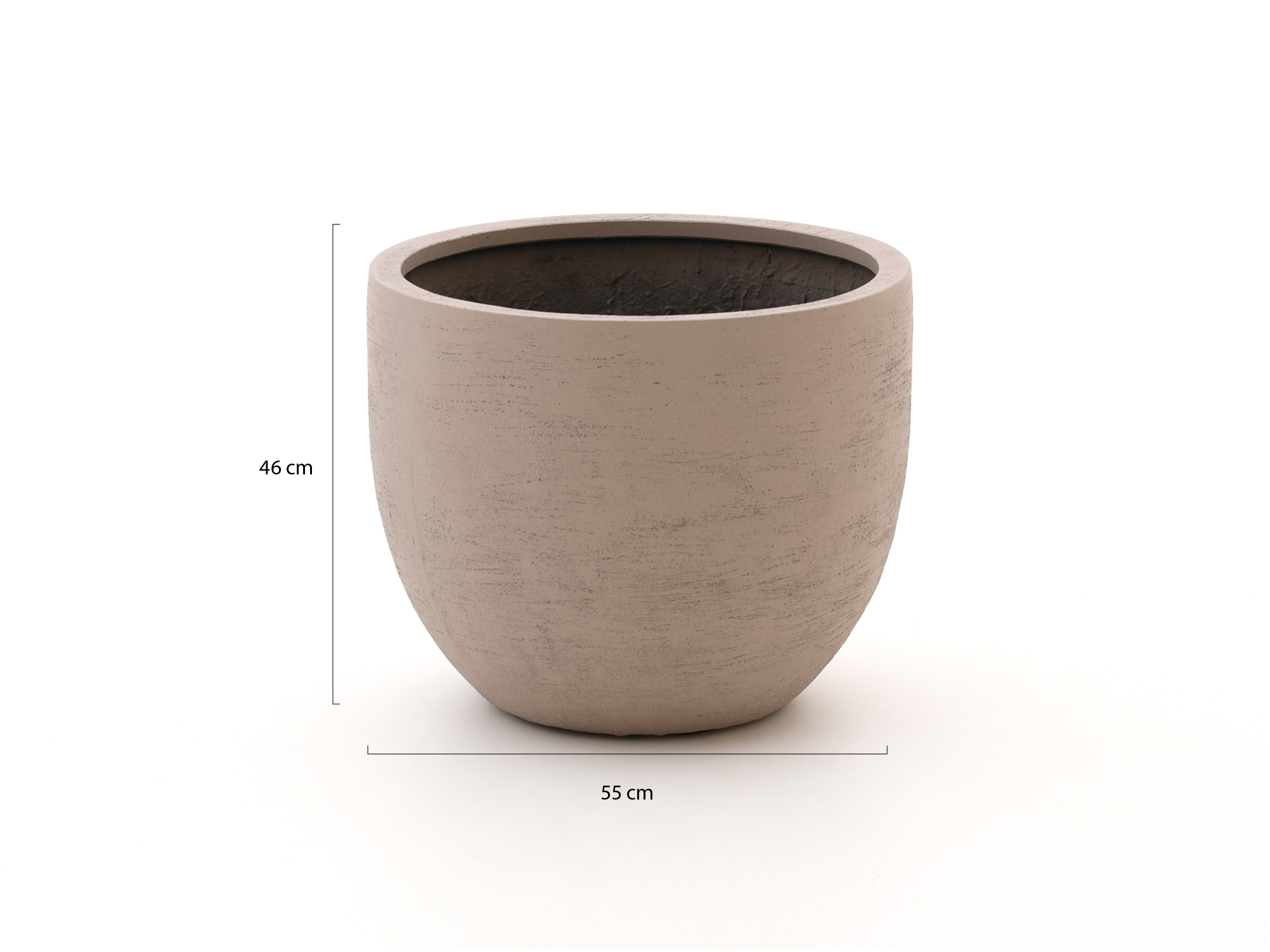 Mit einem Außendurchmesser von 55 cm, einer Öffnung von 47 cm und einem Fassungsvermögen von 105 Litern ist dieser sandfarbene Topf groß genug für eine imposante Kunstpflanze oder eine schöne Solitärpflanze. Das glatte Fiberglas mit Stone Powder und Polyesterharz lässt sich leicht mit lauwarmem Wasser und einer weichen Bürste reinigen. Verwenden Sie bei echten Pflanzen im Innenbereich immer einen Einsatz, da der mitgelieferte Stopfen den Topf nicht vollständig wasserdicht macht. Dieser Blumentopf passt besonders gut zu Ihnen, wenn Sie einen großen, ruhigen Hingucker mit wenig Pflegeaufwand suchen, den Sie aber nicht mehr als komplett gefüllten Topf bewegen möchten.