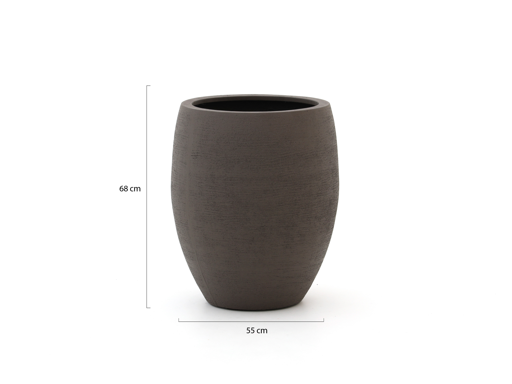 Mit einem Außenmaß von 68 cm Höhe und 55 cm Durchmesser ist dieser Blumentopf ein echter Blickfang, während die Farbe ash brown für eine ruhige Ausstrahlung sorgt. Innen bietet der Topf viel Volumen, sodass auch größere Pflanzen problemlos hineinpassen. Verwenden Sie im Innenbereich echte Pflanzen, ist ein Einsatz oder eine Folie sinnvoll, um ein Durchsickern zu verhindern, denn der mitgelieferte Stopfen macht den Topf nicht komplett wasserdicht. Dieser Topf ist genau das Richtige für Sie, wenn Sie große, markante Töpfe mögen, die wenig Pflege brauchen und das ganze Jahr über stehen bleiben können.