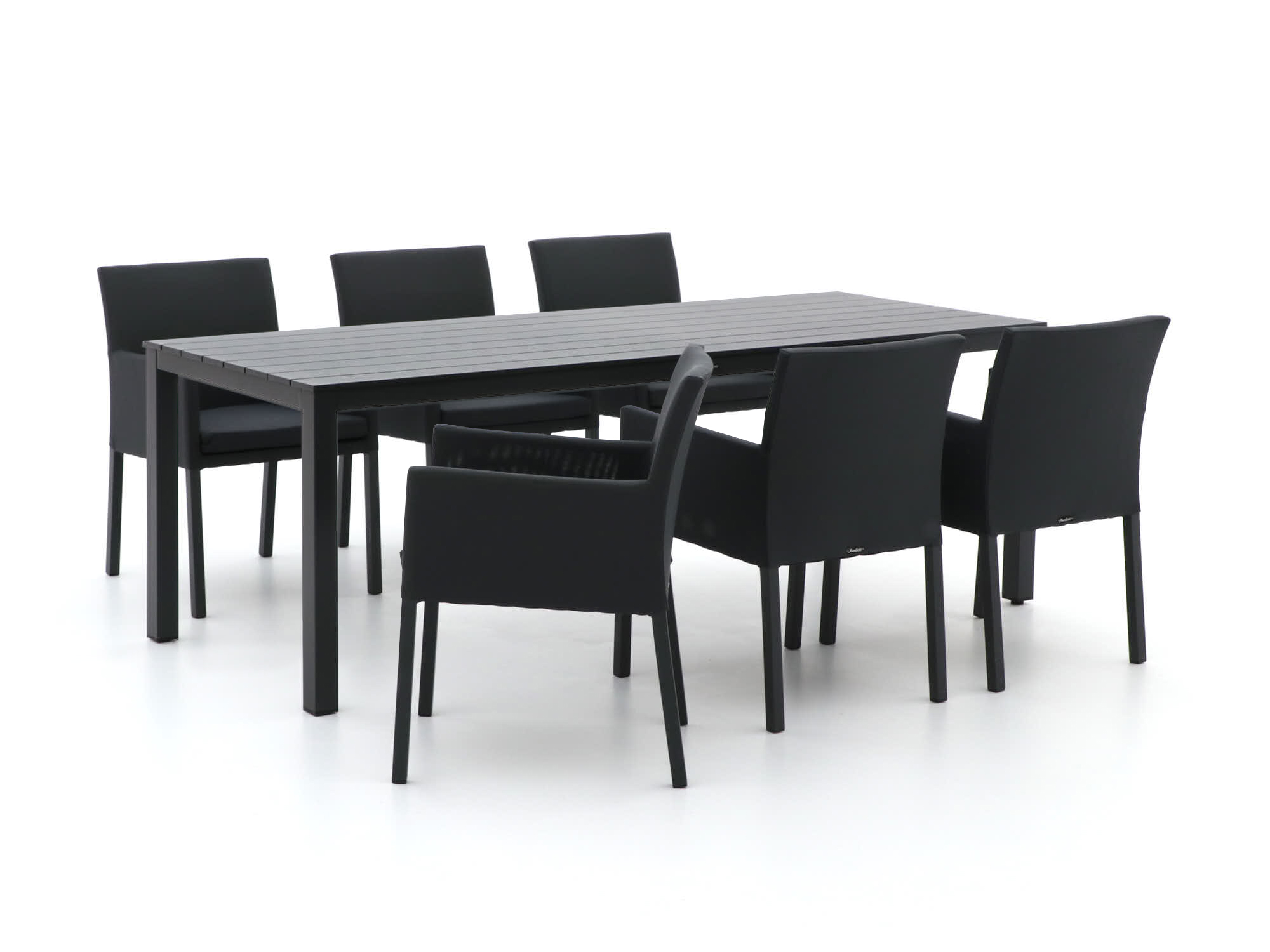 Das Manifesto Arzana/Menzano Gartenmöbel-Set ist ein Aluminium-Set für 6 Personen – ideal, wenn Sie gerne lange draußen mit Freunden oder Familie tafeln. Das atmungsaktive Textilene der Stühle passt sich leicht Ihrem Körper an, sodass Sie auch nach Stunden noch bequem sitzen. Das komplette Set besteht aus Aluminium, ist daher leicht und rostet nicht – praktisch, wenn Ihr Set einfach draußen stehen bleibt. Mit dem rechteckigen Tisch von 220 cm haben Sie genug Platz für große Schalen und einen zusätzlichen Teller, ohne dass es eng wird. Suchen Sie ein geradliniges, pflegeleichtes Set, das Sie wirklich im Alltag nutzen können und das nicht nur gut aussieht? Dann liegen Sie mit dieser Kombination genau richtig.