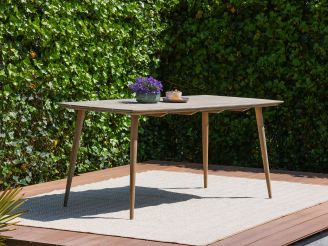 Teakholz-Tisch: Der Tisch aus Teakholz ist robust und wetterfest, sodass er viele Jahre lang Freude bereitet. Mit einer Länge von 160 cm bietet er ausreichend Platz für vier Personen.