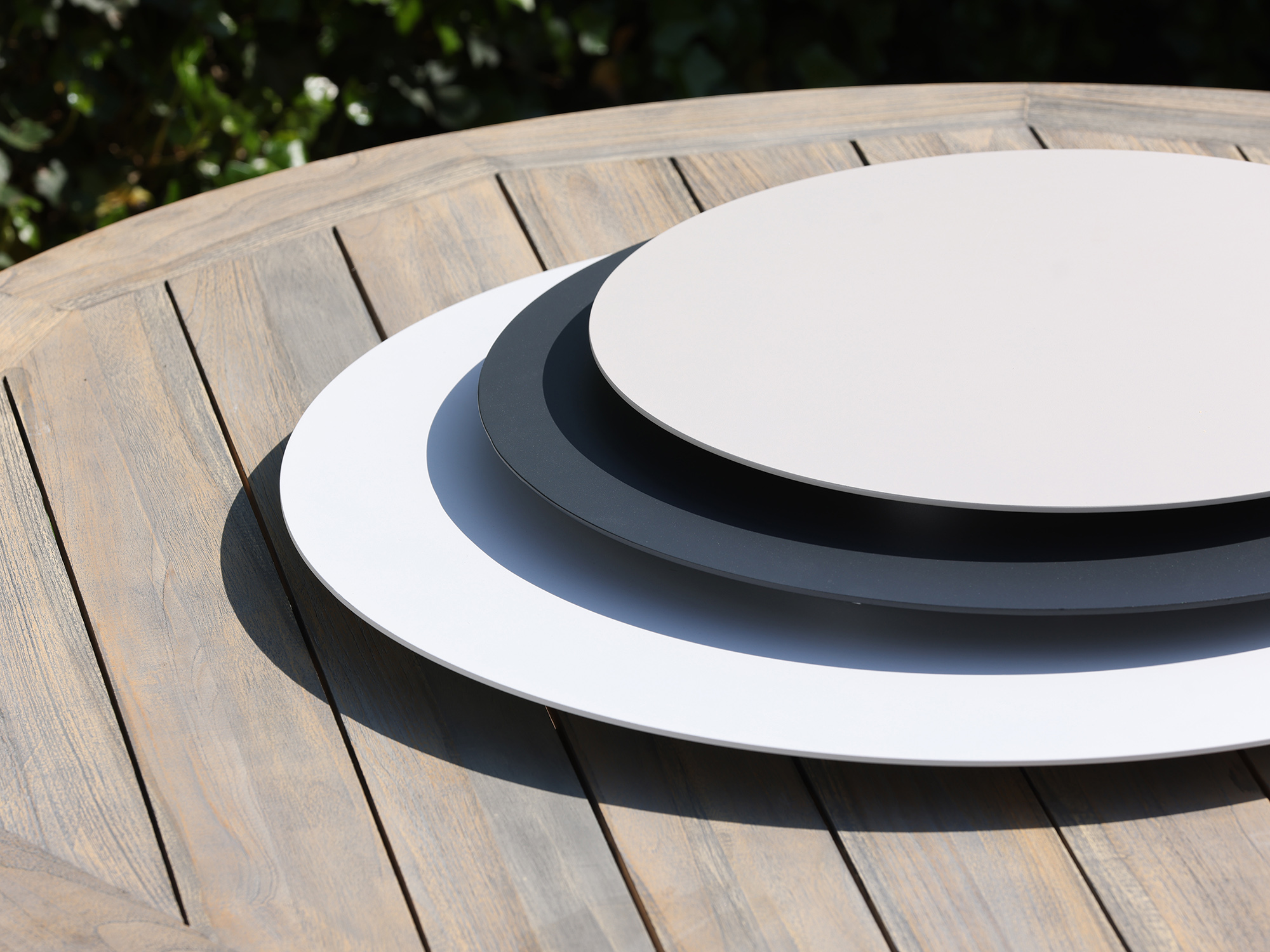 • Durchmesser 45 cm: Der großzügige Durchmesser bietet viel Platz für Geschirr und Speisen, ideal für gesellige Runden im Garten.