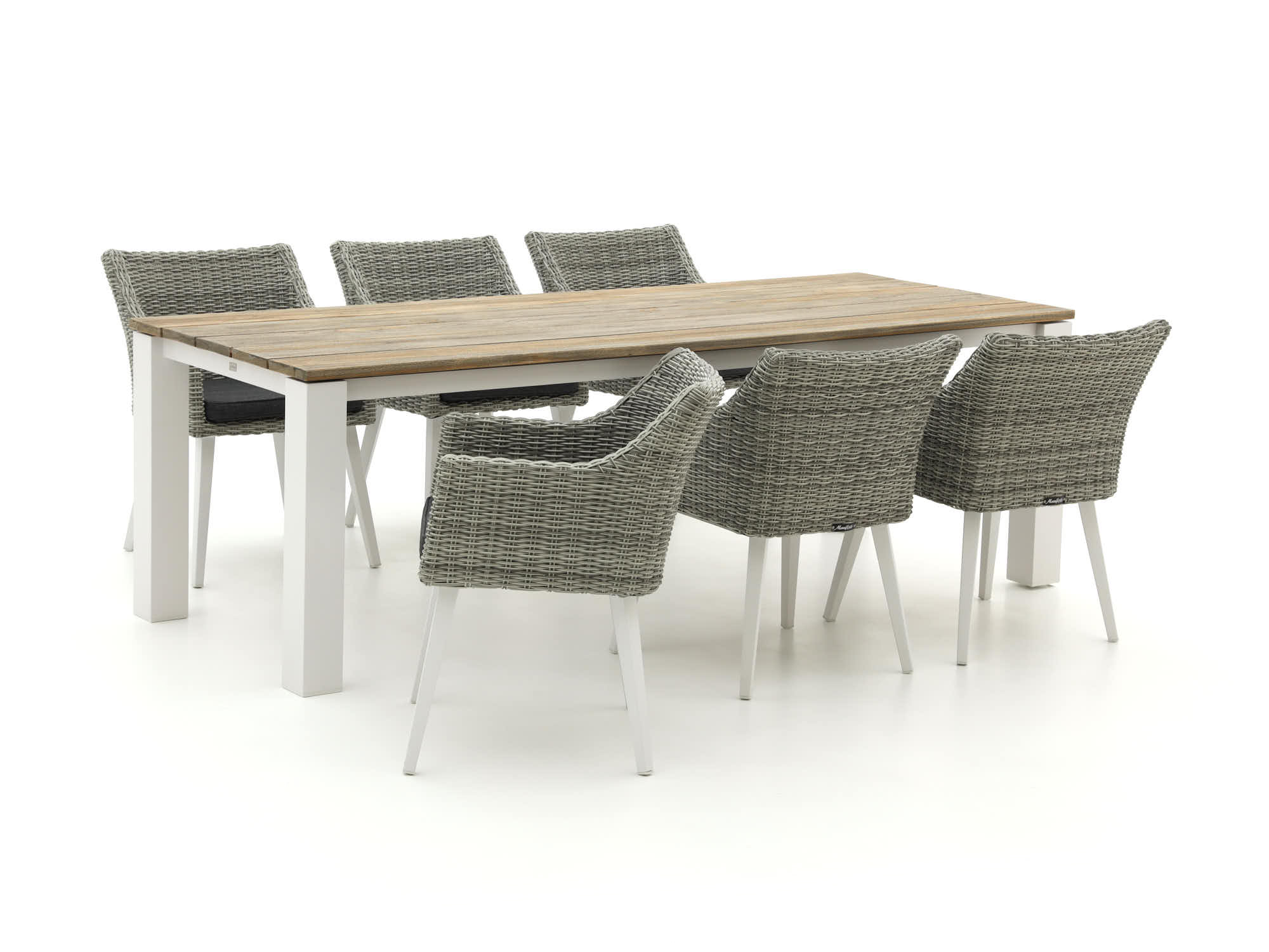 Das Manifesto Matese/Lagundo Gartenmöbel-Set bietet Platz für bis zu sechs Personen und eignet sich ideal für gesellige Abende im Freien. Dieses Set kombiniert robustes Teakholz mit widerstandsfähigem Polyrattan, was es zu einer langlebigen und praktischen Wahl für Ihren Garten macht. Die Kombination aus grauen und natürlichen Teak-Tönen verleiht dem Set einen modernen und gleichzeitig zeitlosen Look. Genießen Sie Komfort und Stil mit den inkludierten Kissen, die für zusätzlichen Sitzkomfort sorgen.