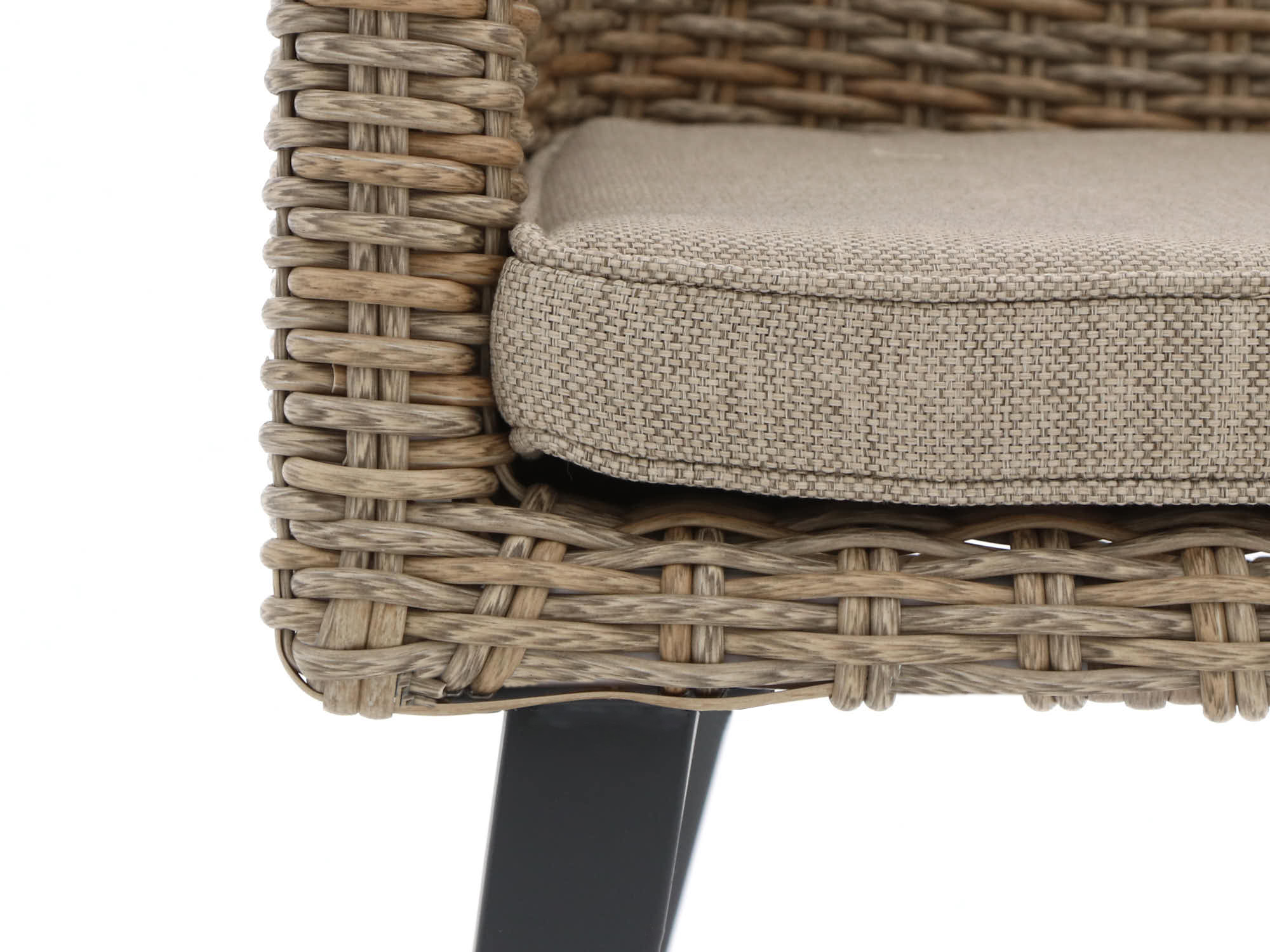 Handgeflochtenes Polyrattan: Die Stühle sind aus Polyrattan gefertigt, das Feuchtigkeit trotzt und formstabil bleibt.
