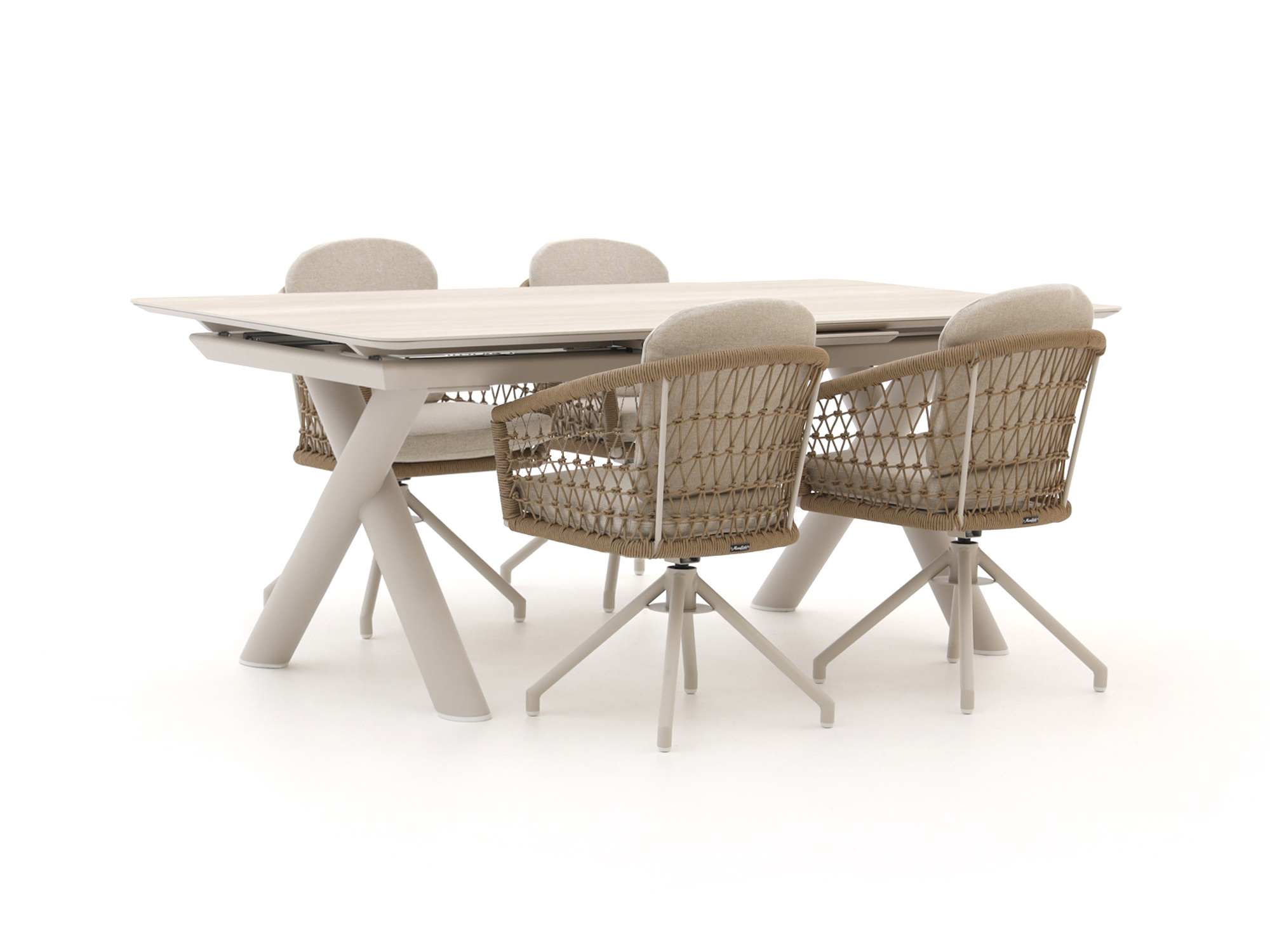 Camel Sand (Twist Polyrattan = Natural) (Tischplatte = Sintered Stone Travetin)