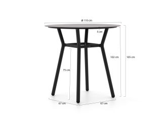 Der Manifesto Tritoni Bartisch ist ein runder Bartisch mit 110 cm Durchmesser – ideal, wenn Sie beim Drink lieber stehen oder auf Barhockern sitzen. Durch die Höhe von 105 cm können Sie sich bei einer Party bequem anlehnen, und unbenutzte Barhocker lassen sich einfach unter den Tisch schieben, sodass Ihre Terrasse aufgeräumt wirkt. Die dunkelgraue Aluminiumplatte und das Gestell sind leicht und pflegeleicht, daher können Sie den Tisch mühelos umstellen. Durch die runde Form können Sie sich gut um den Tisch herum bewegen – praktisch auf einer schmaleren Terrasse oder unter einer Überdachung.