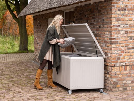 Die Gartenbox ist vollständig wasserdicht, sodass Ihre Kissen das ganze Jahr über darin bleiben können