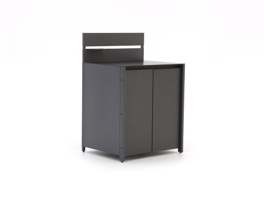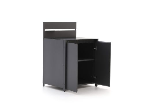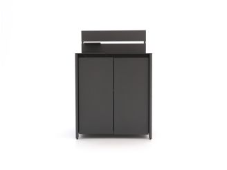 Die Arbeitsplatte aus Sintered Stone ist keramisch und fühlt sich sehr robust an. Sie ist bestens gegen wechselnde Witterungsbedingungen gewappnet und verleiht Ihrer Außenküche eine ruhige, edle Ausstrahlung. Mit einer Tiefe von 80 cm haben Sie reichlich Platz, um Speisen vorzubereiten, Schalen abzustellen oder Ihr BBQ-Zubehör in Griffweite zu halten. Die Stahlkonstruktion und die doppelwandigen Türen sorgen dafür, dass das Modul sicher steht und sich angenehm bedienen lässt – auch, wenn Sie es häufig nutzen.