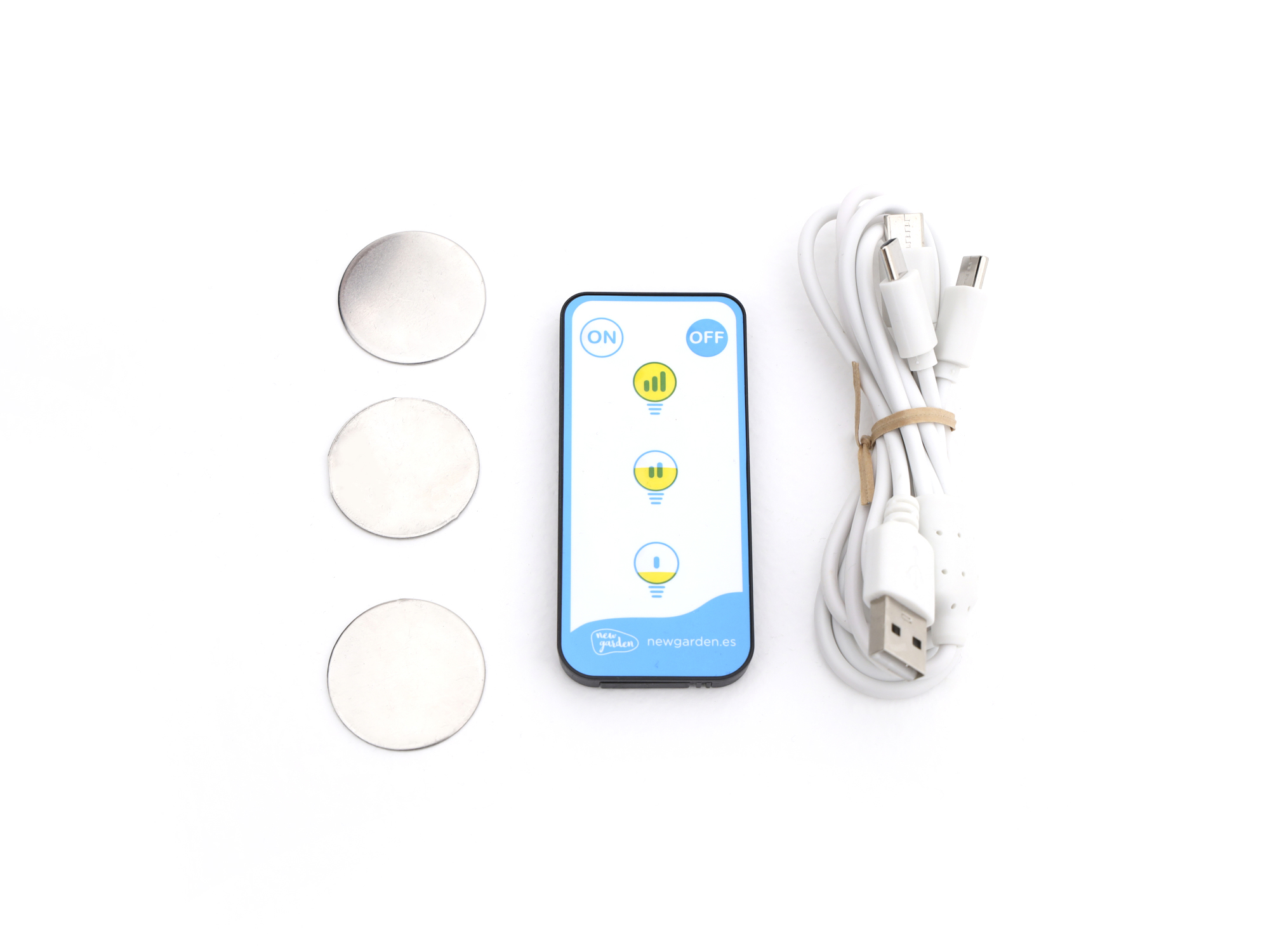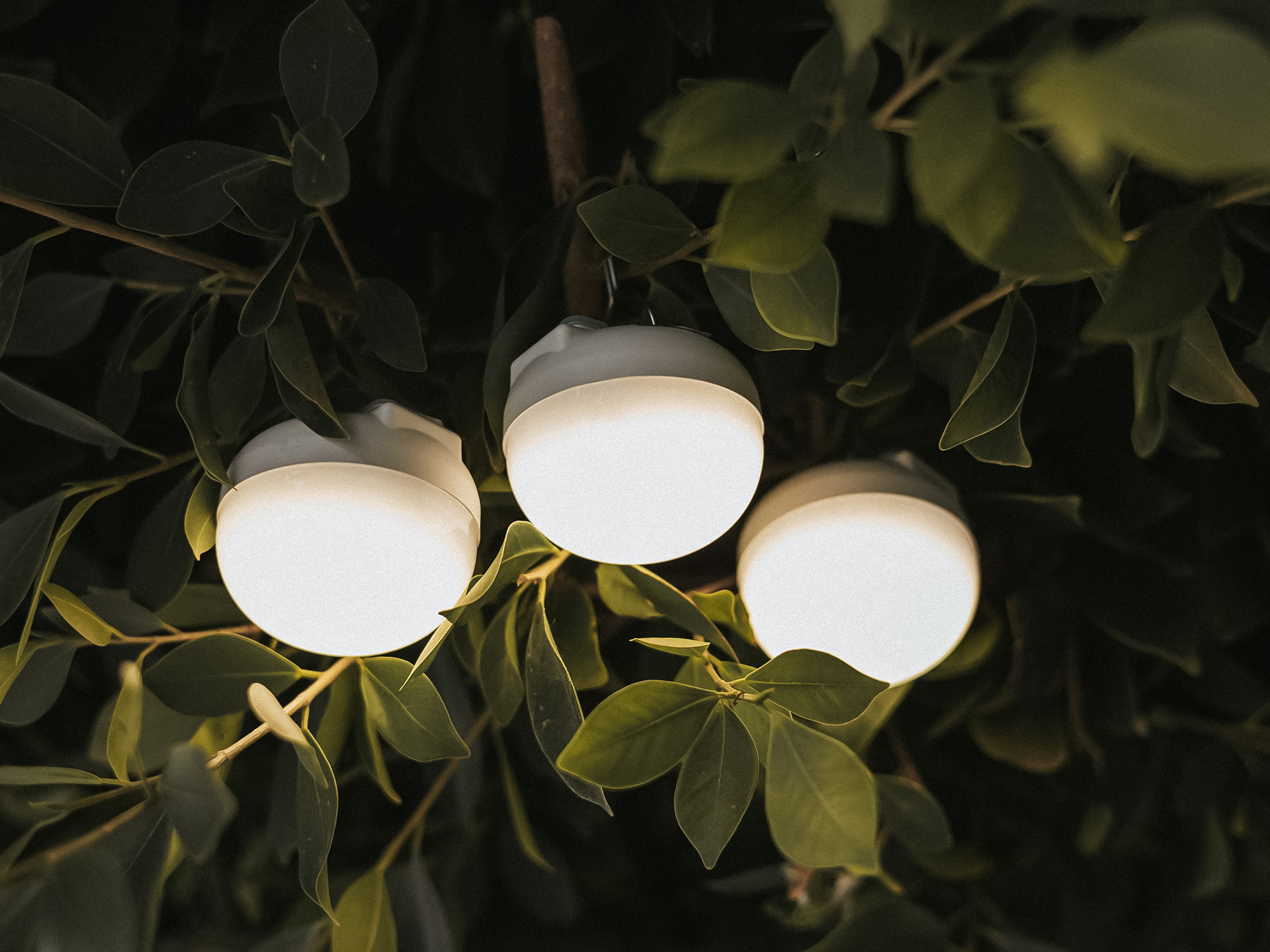 Dieses Set aus drei Mini-Außenlämpchen in White spendet warmes Licht, wo immer Sie möchten. Sie befestigen sie mit dem magnetischen Fuß an Metall oder hängen sie am Haken auf. Das Licht ist warmweiß und dimmbar – von sanfter Lichtstimmung bis hell, bequem per Fernbedienung. Sie sind kabellos und per USB-C aufladbar, Sie benötigen also keine Steckdose. Mit einer vollen Ladung halten sie bis zu 20 Stunden, je nach eingestellter Helligkeit. Dank IP54 sind sie für den Außeneinsatz geeignet. Jedes Lämpchen ist kompakt: ø 6,5 cm und 6 cm hoch. Die LED ist bereits integriert – auspacken und verwenden.
