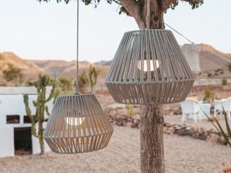 Machen Sie Ihre Abende draußen extra gemütlich mit dieser Hängeleuchte in Taupe, die Sie einfach am Seil über dem Gartentisch aufhängen. Warmweißes Licht, das sich dimmen lässt, sorgt für Stimmung beim abendlichen Drink oder liefert extra Helligkeit beim Spiel am Tisch. Die Leuchte ist über USB aufladbar – ohne lästige Kabel oder eine Steckdose in der Nähe. Mit einer Ladung leuchtet sie bis zu 20 Stunden, je nach Helligkeitsstufe. Dank IP54 ist sie wirklich für draußen gemacht und lässt sich unbesorgt im Freien nutzen. Praktisch: Die Lichtquelle rastet magnetisch in der Leuchte ein und lässt sich dank integriertem Haken auch separat verwenden. Alles steuern Sie bequem mit der mitgelieferten Fernbedienung. Mit einem Durchmesser von 40 cm und einer Höhe von 30,5 cm passt sie problemlos in die Lounge-Ecke oder unter die Veranda.