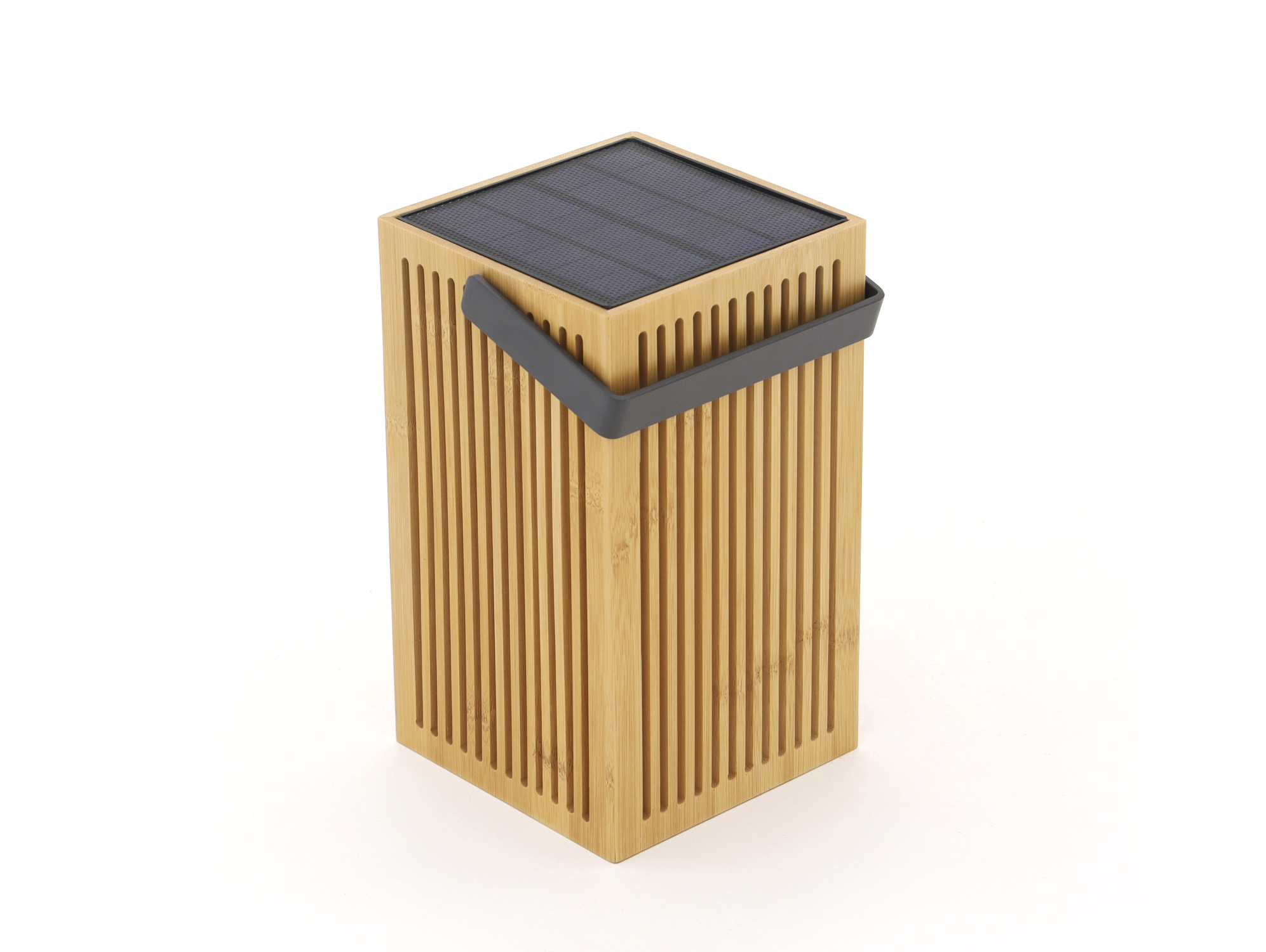 Mit dieser Bambus-Laterne in Naturton wird ein gemütlicher Abend draußen noch etwas länger. Kompakt im Format und 24 cm hoch – sie passt problemlos auf den Gartentisch oder neben Ihren Stuhl. Die integrierte LED spendet warmweißes Licht mit 3000K, ideal für eine entspannte Atmosphäre. Sie kann auch richtig hell werden mit 900 lumen, und wenn Sie möchten, dimmen Sie sie wieder auf sanftes Licht. Aufladen geht ganz einfach in der Sonne oder mit dem mitgelieferten USB Micro Kabel. Mit einer vollen Ladung leuchtet sie je nach Einstellung 6 bis 20 Stunden. Dank IP54 kann sie problemlos draußen bleiben.