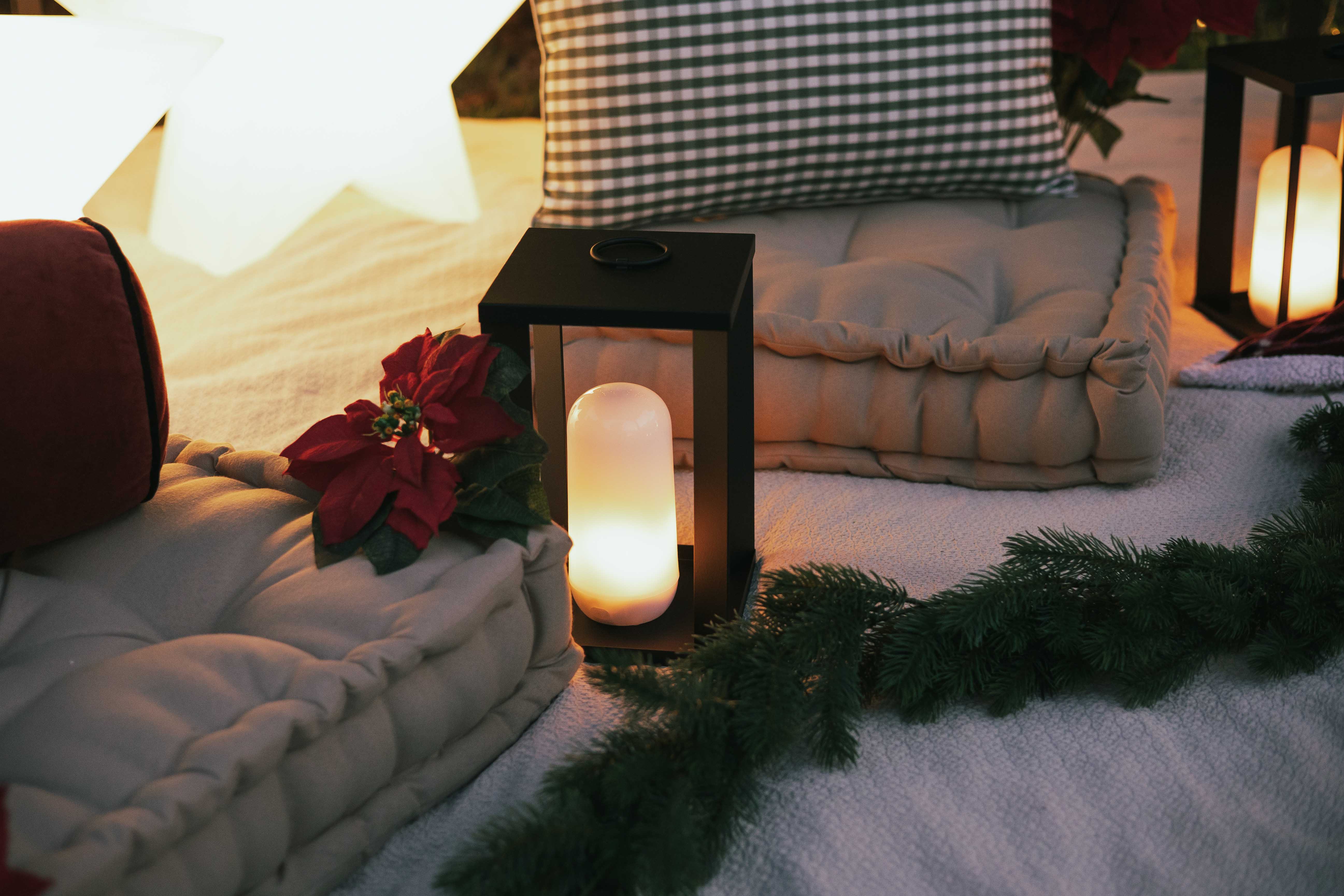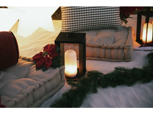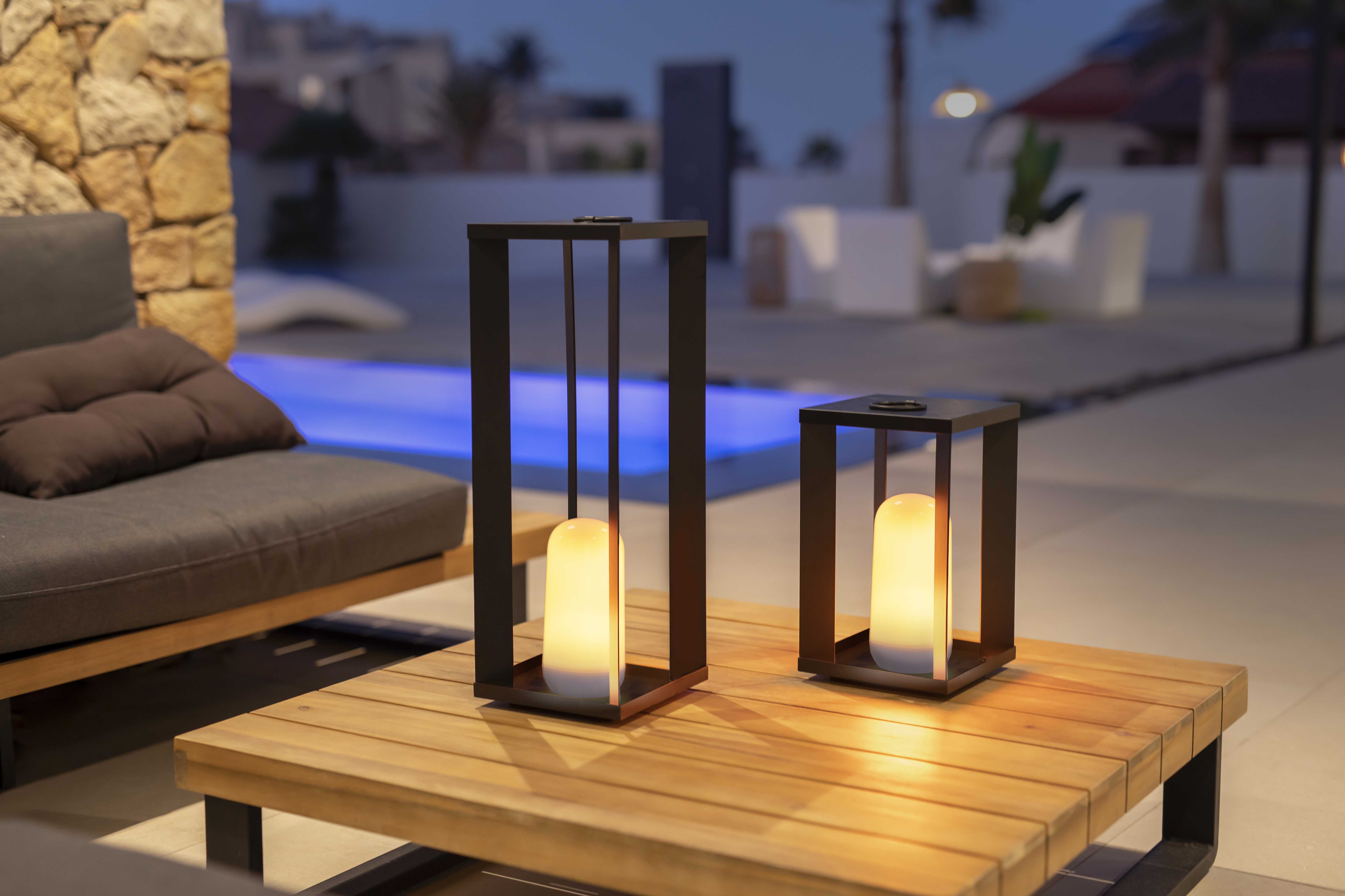Stellen Sie die Laterne in den Garten oder auf die Terrasse – und schon entsteht eine warme Atmosphäre. Sie wählen warmweißes Licht, das sich dimmen lässt, oder den Flammeneffekt für ein extra gemütliches Gefühl. Mit 18 cm Durchmesser und 30 cm Höhe passt sie mühelos auf den Gartentisch. Die Candy bulb Lichtquelle ist abnehmbar, daher können Sie sie auch separat verwenden; sie rastet mit dem magnetischen Fuß in der Laterne ein. Kabellos und über USB C mit dem mitgelieferten Kabel aufladbar, gut für bis zu 20 Stunden Licht – ideal für einen langen Abend. Mit der mitgelieferten Fernbedienung steuern Sie sie bequem von Ihrem Sitzplatz. IP54 bedeutet wirklich für draußen geeignet, daher ist die Nutzung drinnen wie draußen kein Problem. Die Laterne ist schwarz und gibt 200 lumen mit warmweißem Licht von 2000K.