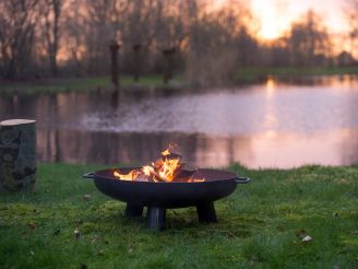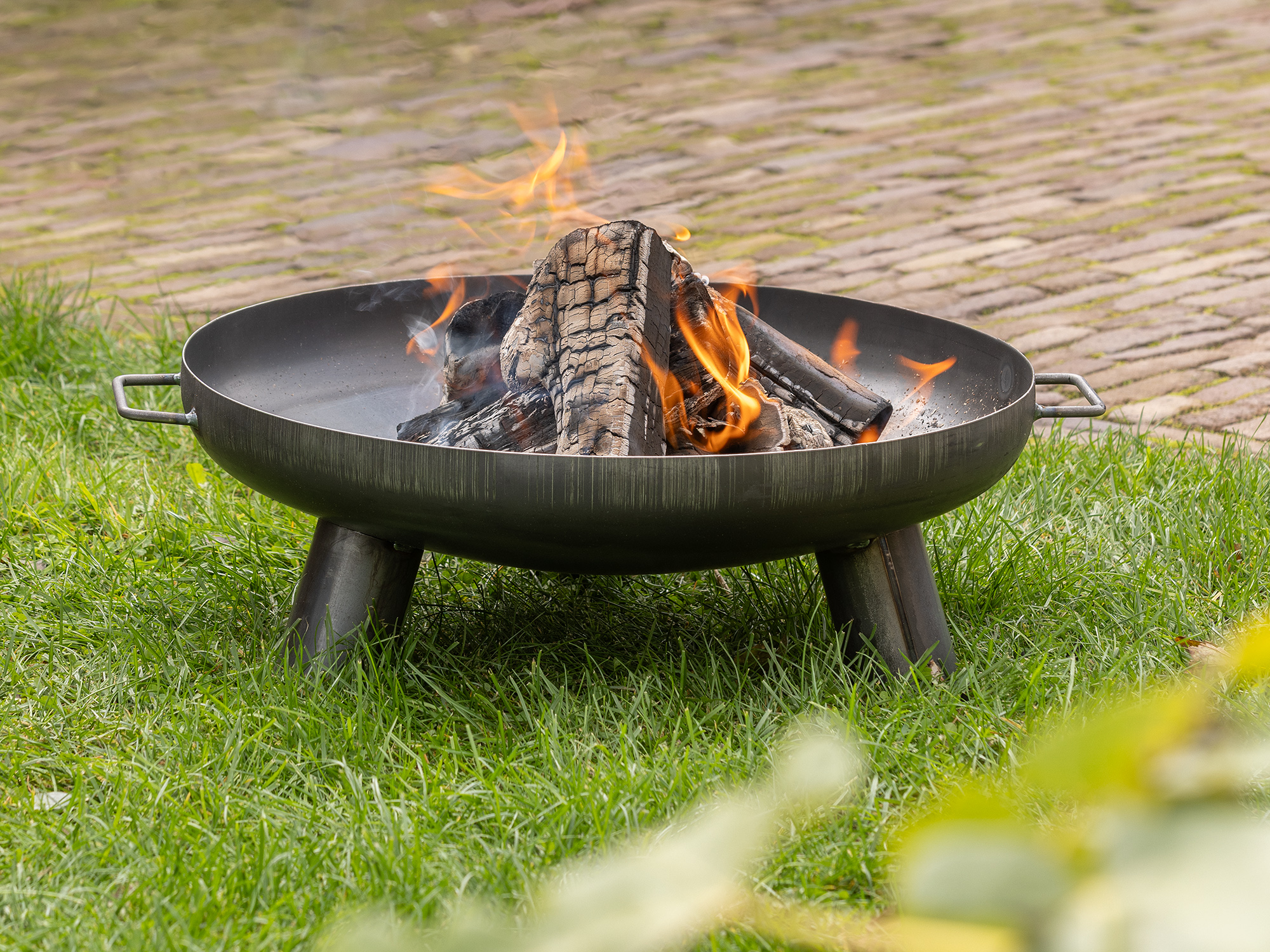 Verwenden Sie Anzündwürfel oder etwas Anzündholz, um das Feuer ruhig aufzubauen, und legen Sie dann größere Scheite nach. Durch die offene Bauweise verteilt sich die Wärme schnell und sorgt für eine angenehme Atmosphäre. Stellen Sie die Salo auf einen ebenen, festen Untergrund – am besten aus Stein oder Fliesen. Lassen Sie die Schale vollständig abkühlen, bevor Sie sie mit den Griffen anheben. So bleibt die Nutzung sicher und komfortabel.