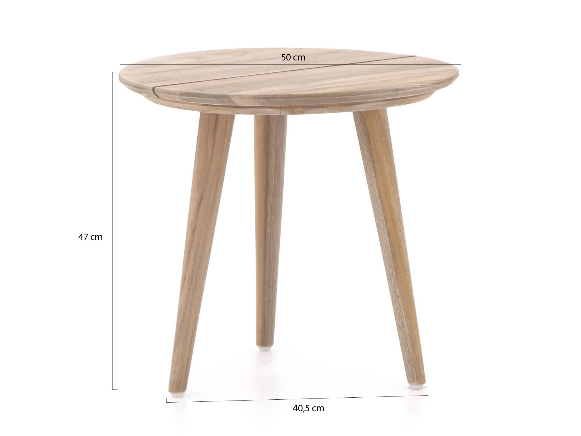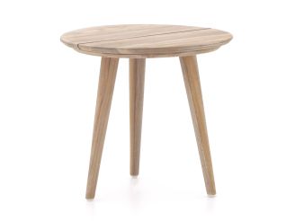 Der ROUGH K Beistelltisch Garten ø 50 cm ist ein kompakter, runder Holztisch, der sich ideal neben Ihrem Lounge-Set oder Gartensessel macht. Gefertigt aus robustem Teakholz in der Farbe old teak greywash: ein ruhiger, neutraler Farbton, der sich leicht mit dem Rest Ihres Gartens kombinieren lässt. Durch das Format passt er auch gut auf eine kleinere Terrasse oder einen Balkon, bietet aber trotzdem genug Platz für ein paar Getränke und eine Schale mit Snacks. Achten Sie darauf, den Tisch auf einen ebenen Untergrund zu stellen, besonders wenn Sie Gläser darauf abstellen. Dieser Beistelltisch ist besonders praktisch, wenn Sie gerne entspannt sitzen und alles in Griffweite haben möchten, ohne immer wieder aufstehen zu müssen.