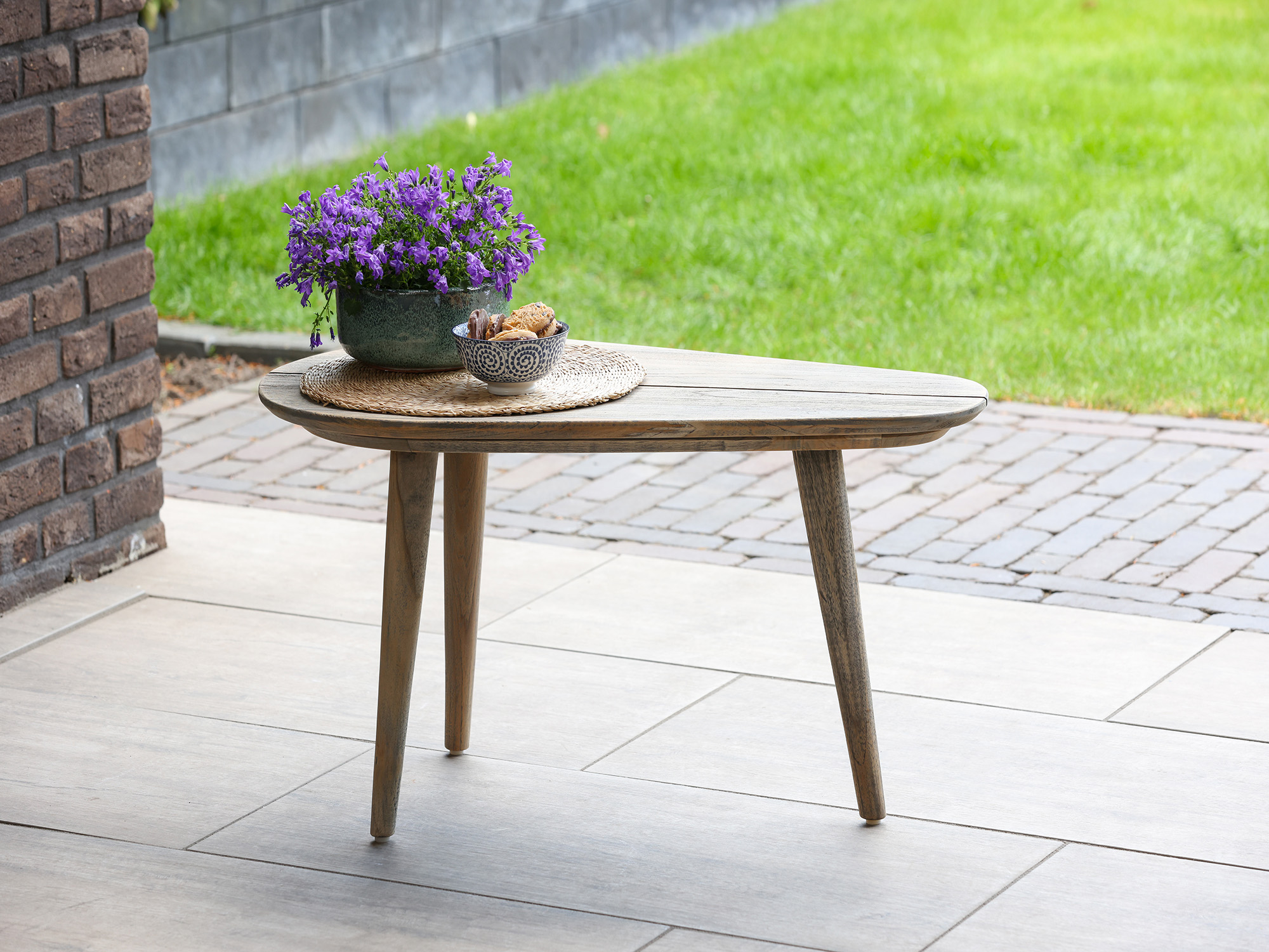 Der ROUGH-K Lounge Loungetisch ist ein echter Hingucker für Ihren Außenbereich. Mit seiner dreieckigen Form bringt er frischen Wind in Ihren Garten oder auf Ihre Terrasse. Der Tisch ist aus robustem Teakholz gefertigt, das jedem Wetter standhält und Ihnen viele Jahre Freude bereitet. Dank der Old Teak Greywash Oberfläche wirkt der Tisch natürlich und zeitlos. Er ist nicht nur stabil, sondern auch praktisch – perfekt, um Ihre Getränke oder Snacks in Reichweite zu haben, während Sie entspannen.