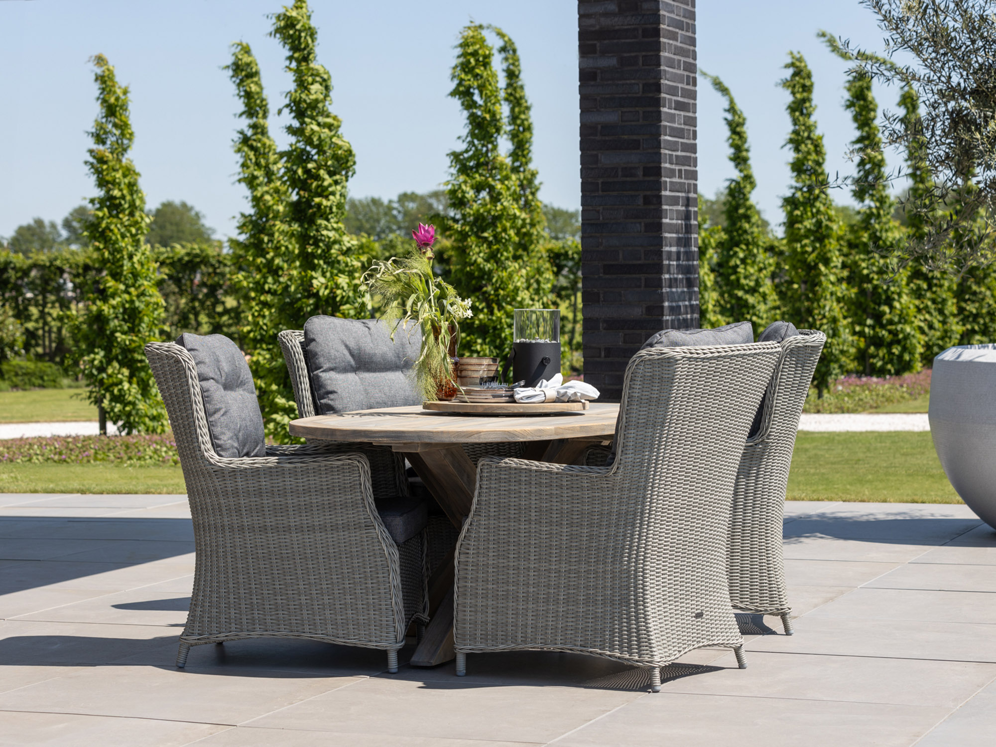 Old Teak Greywash: Die spezielle Oberflächenbehandlung verleiht dem Tisch einen natürlichen, grauen Look, der sich harmonisch in jeden Garten einfügt.