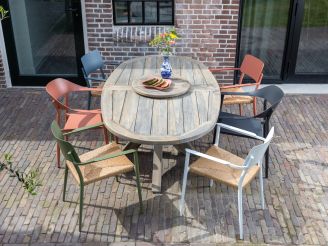 Der ROUGH-Y Ellips Gartentisch ist ein ovaler Tisch aus Old Teak Greywash, der für gesellige Runden im Freien gemacht ist. Mit seiner abgerundeten Form ohne harte Ecken wirkt er offen und einladend. Das robuste Teakholz hält jedem Wetter stand und sorgt dafür, dass Sie viele Jahre Freude an Ihrem Tisch haben. Dank der großzügigen Maße von 200 x 110 cm bietet er bequem Platz für sechs Personen und lädt zu langen Abenden im Garten ein. Ein praktisches Detail: Die Tischplatte ist sauber geschliffen, sodass keine Splitter entstehen.