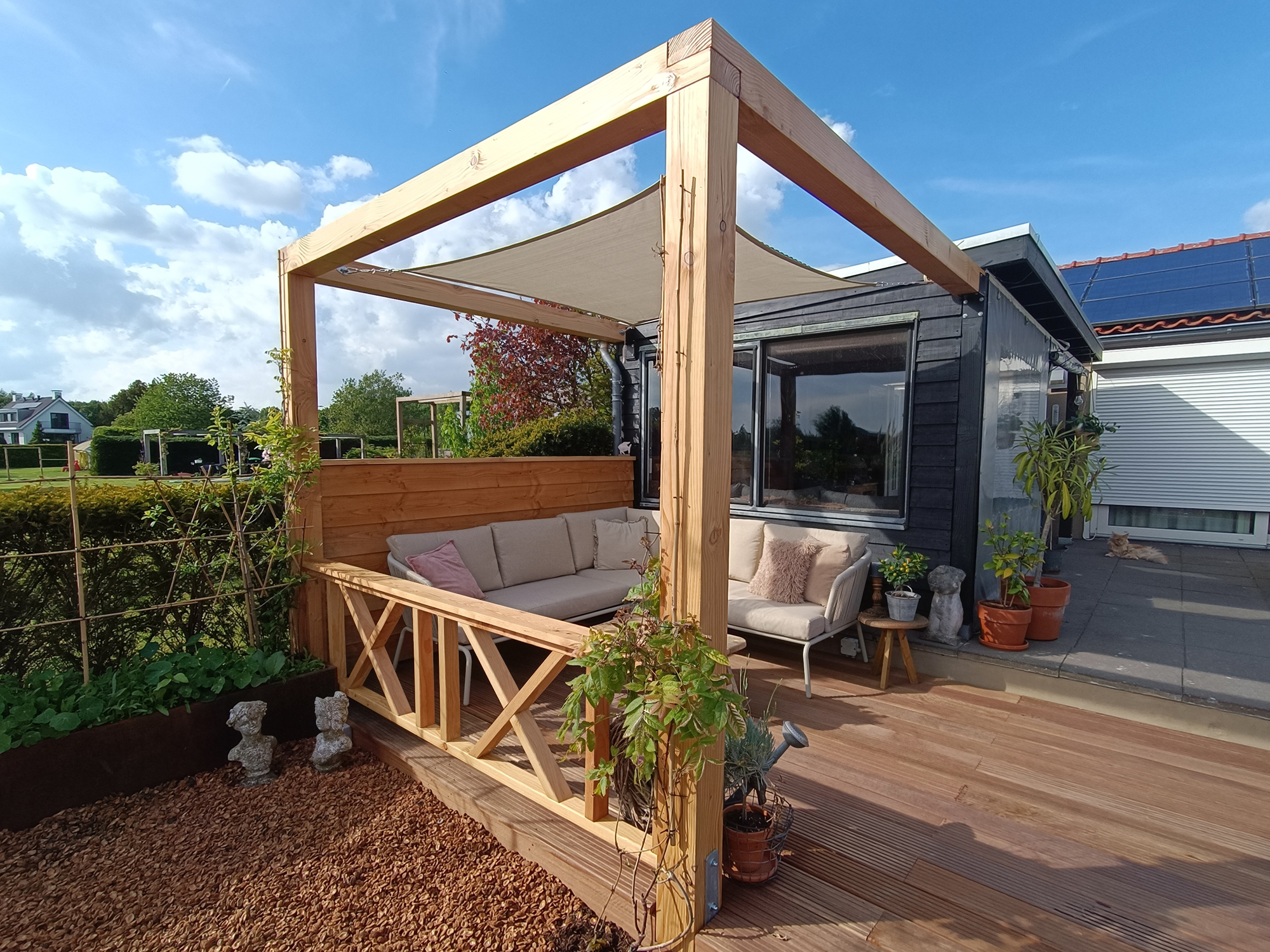 • Dank des atmungsaktiven HDPE-Gewebes bleibt es unter dem Sonnensegel spürbar kühler und das Material hält zugleich verschiedenen Witterungsbedingungen stand