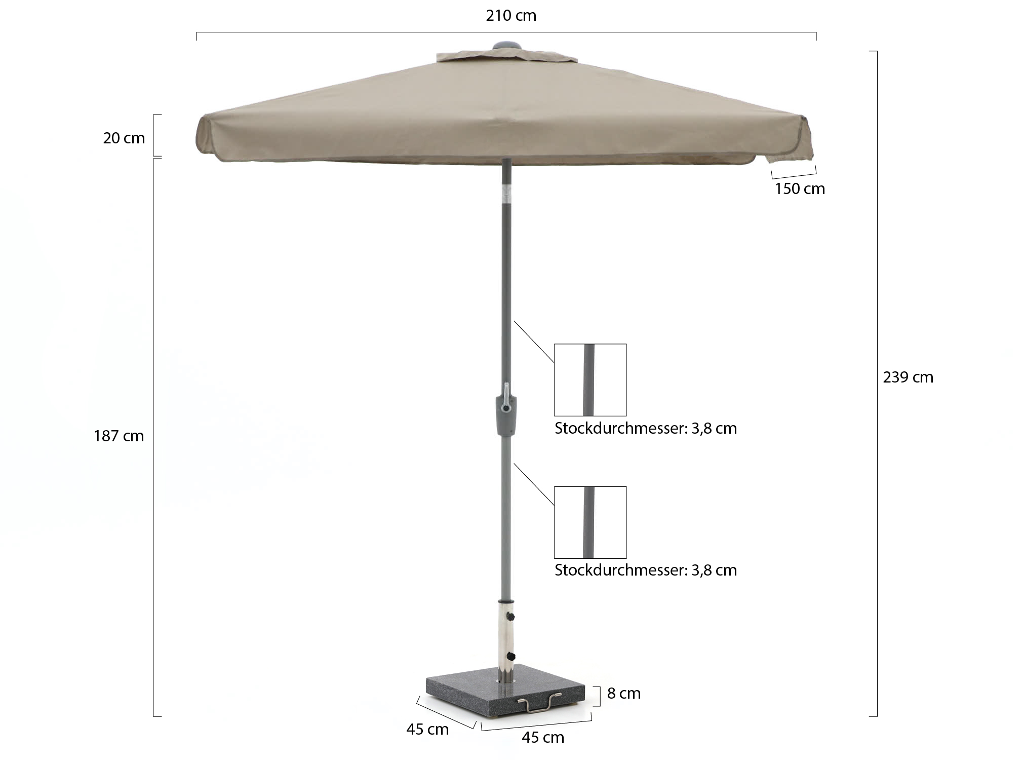 Light Taupe (inkl. 35 kg Sonnenschirmständer) (Aluminium)