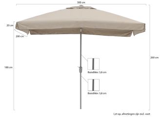 Das Sonnenschirmtuch ist aus Polyester und hat einen Volant. Der Volant bietet extra Schatten. Der Sonnenschirm hat einen Mechanismus zum Öffnen und Schließen. Sie können den Aruba Sonnenschirm durch eine Knickfunktion im Sonnenschirmstock nach links und rechts kippen. Dadurch sitzen Sie immer im Schatten. Der Aruba Sonnenschirm ist leicht zu lagern, da der Sonnenschirmstock aus zwei Teilen besteht.
