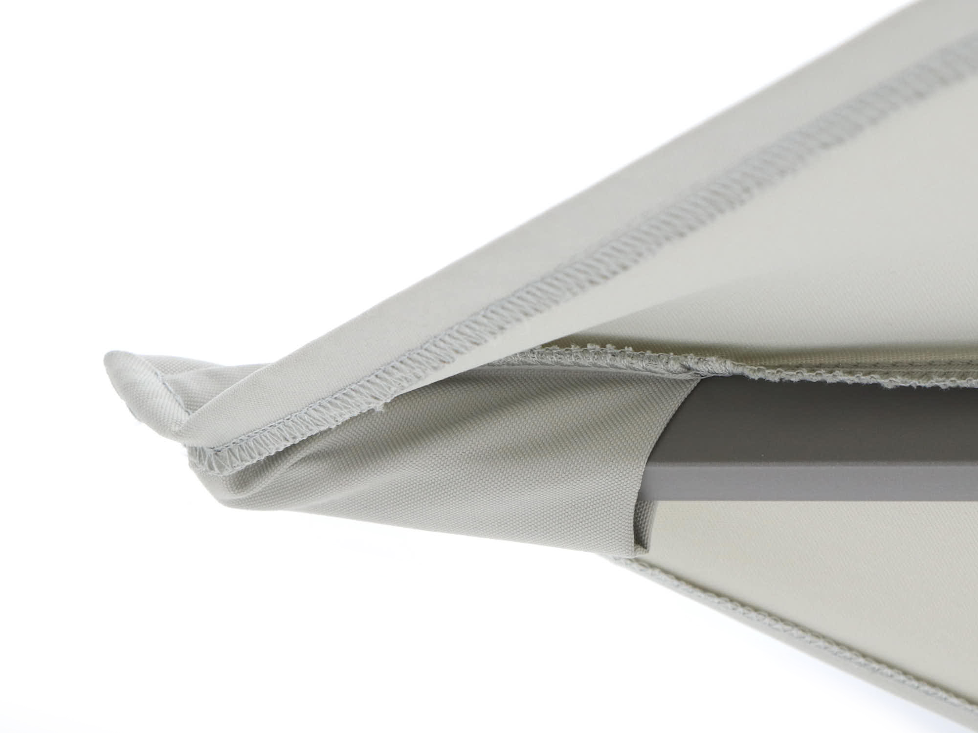 Detailfoto von einem hellen Sonnenschirmtuch