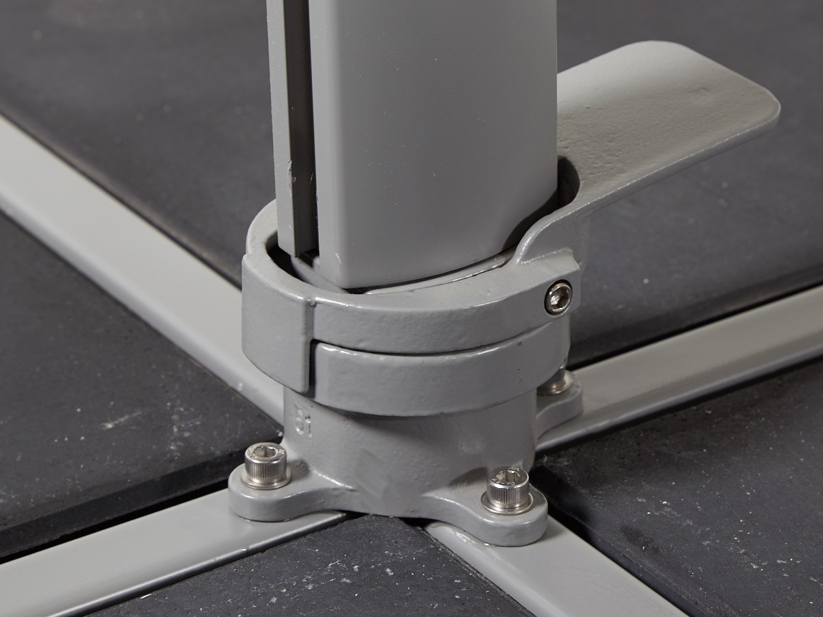 Dank der seitlich versetzten Aufhängung genießen Sie maximale Bewegungsfreiheit zwischen Gartentisch und Lounge-Set.